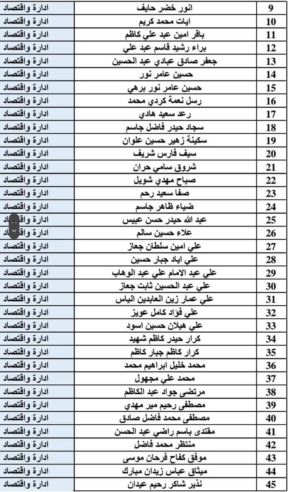 يتعين على الطلبة المدرجة أسماؤهم في القوائم أدناه مراجعة قسم الشؤون القانونية في جامعة وارث الأنبياء (عليه السلام) خلال مدة خمسة أيام من تاريخ الإعلان.