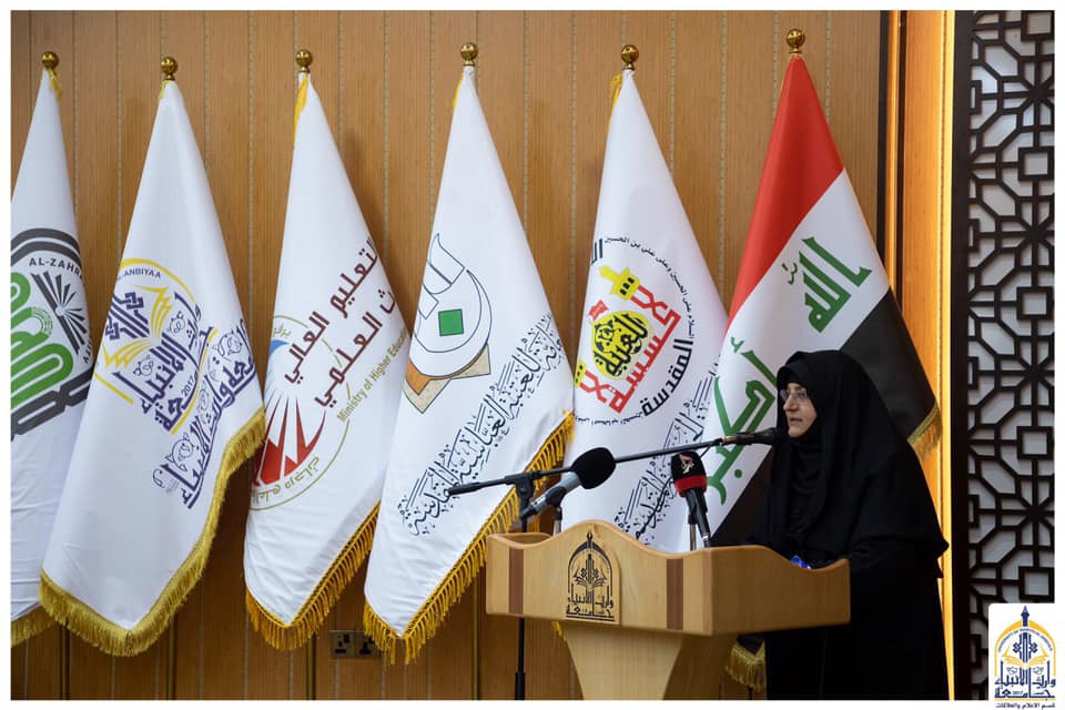 بحضور رئيس قسم التعليم العالي في العتبة الحسينية المقدسة السيد افضل الشامي والسيد رئيس جامعة وارث الانبياء(عليه السلام) الاستاذ الدكتور طالب حسن موسى والسيدة رئيس جامعة الزهراء(عليها السلام)