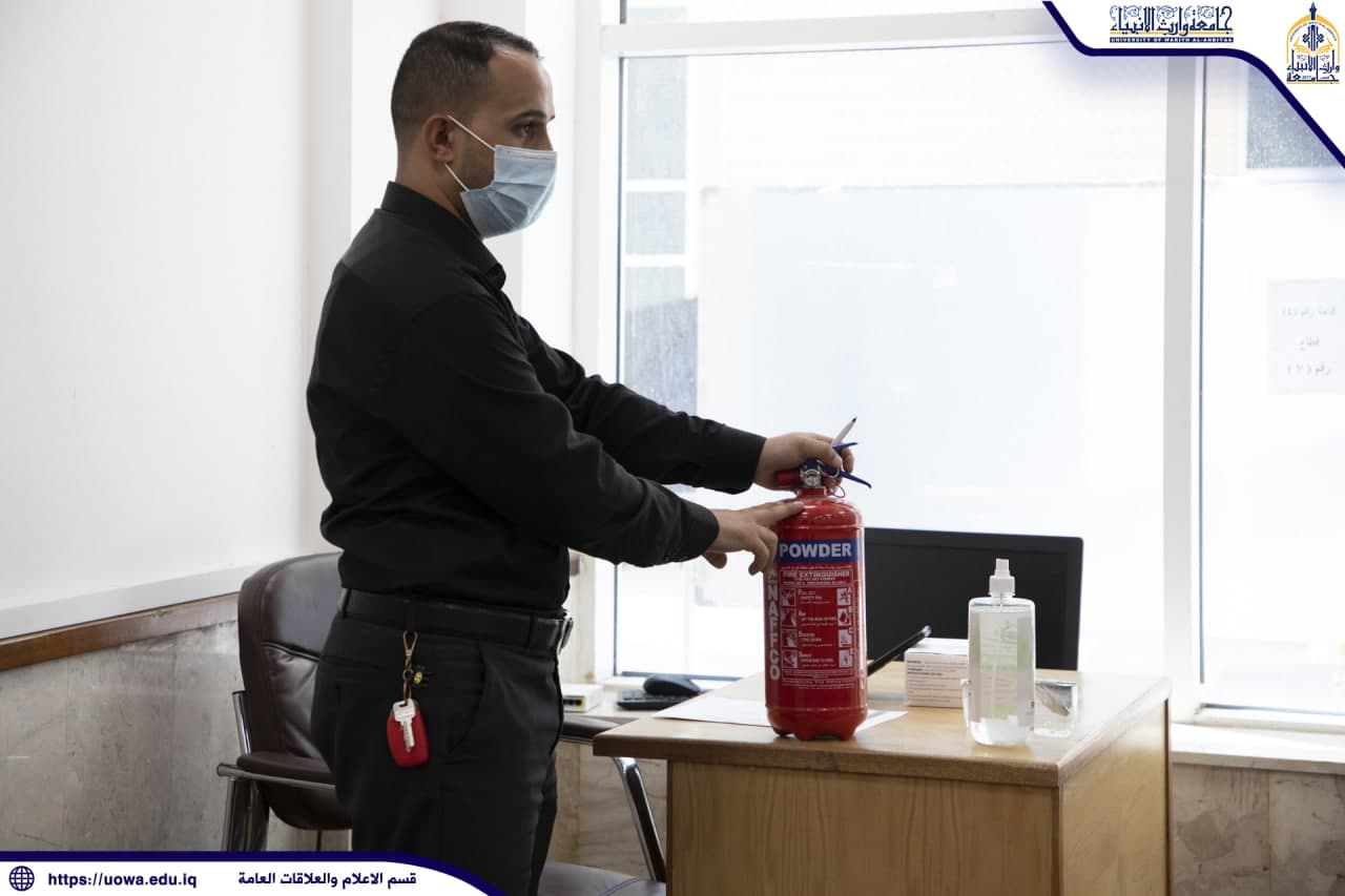 حرصاً على السلامة العامة داخل اروقة الجامعة ومنشآتها المختلفة،اقيمت دورة تدريبية للسلامة العامة واطفاء الحرائق والوقاية من حصولها لمنتسبي قسم المتابعة وقسم ديوان الجامعة ، وبهذا الخصوص تحدث مسؤول شعبة الدفاع المدني في الجامعة حسين عباس منديل قائلاً :