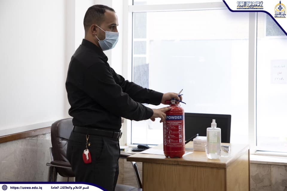 حرصاً على السلامة العامة داخل اروقة الجامعة ومنشآتها المختلفة،اقام مركز التعليم المستمر دورة تدريبية للسلامة العامة واطفاء الحرائق والوقاية من حصولها لمنتسبي قسم المتابعة وقسم ديوان الجامعة ، وبهذا الخصوص تحدث مسؤول شعبة الدفاع المدني في الجامعة حسين عباس منديل قائلاً :