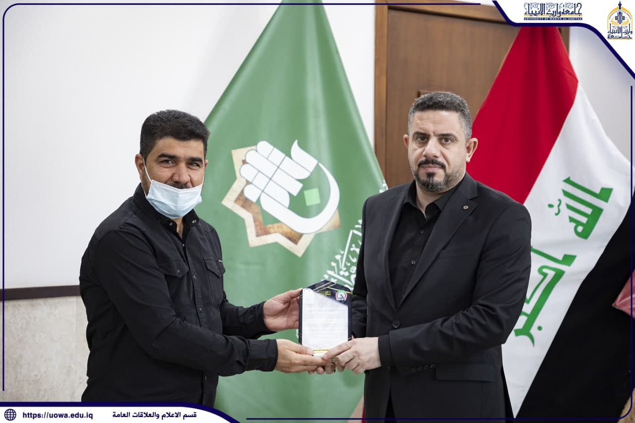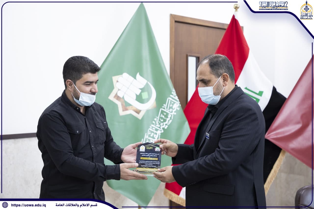 تثميناً للجهود المبذولة في خدمة زائري اربعينية الامام الحسين(عليه السلام) في كل عام ، كرمت طبابة هيئة الحشد الشعبي/فرع كركوك هيئة التعليم الجامعي في العتبة الحسينية المقدسة ورئاسة جامعة وارث الانبياء (عليه السلام) فضلاً عن عمادة كلية التمريض ، حيث قدم الوفد الزائر دروع الشكر والتقدير لما قدمته الهيئة والجامعة من تسهيلات في الاعوام السابقة في نصب المستشفى المتنقل داخل الجامعة لخدمة زائري اربعينية الامام الحسين (علية السلام) .
