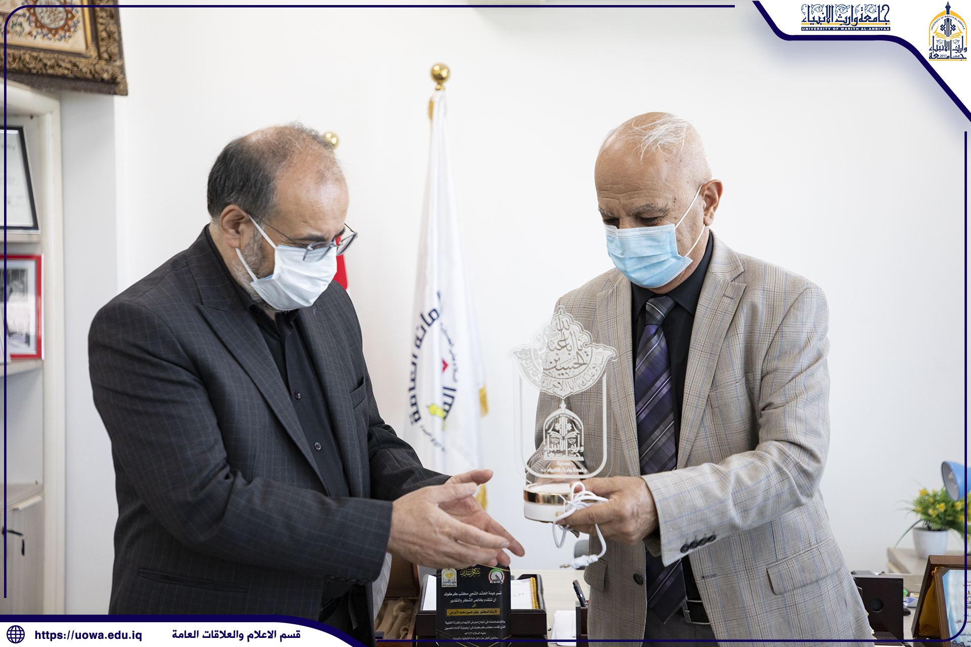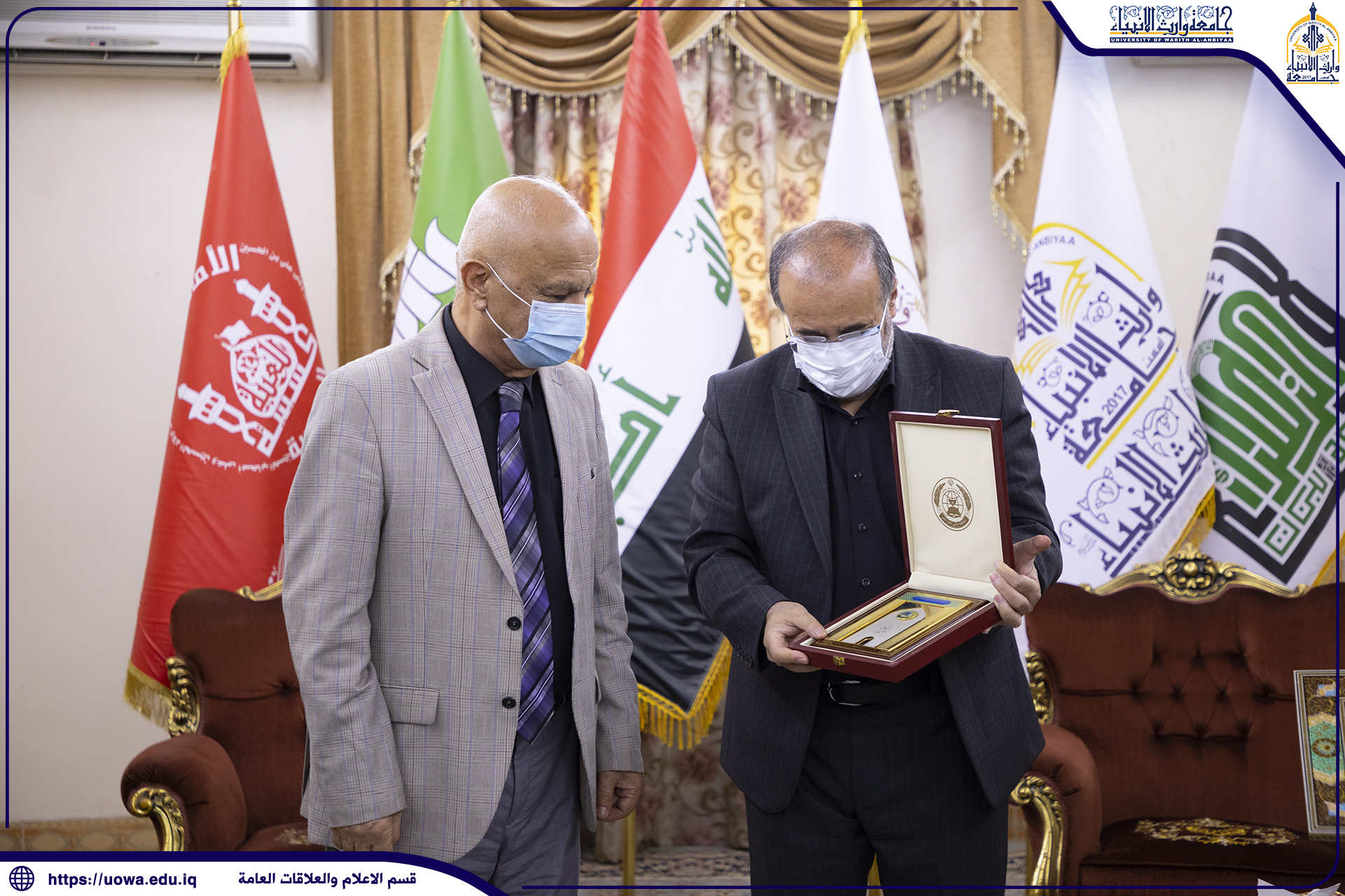 زار وفد من جامعة الرسول الاعظم (صلى الله عليه واله) الايرانية جامعة وارث الانبياء(عليه السلام) ، حيث ضم الوفد كل من السيد رئيس الجامعة الدكتور عبد الحسين صفائي ووزير التجارة والصناعة الاسبق الدكتور مهدي غضنفري وعدد من اساتذة الجامعة ، كان باستقبال الوفد السيد رئيس الجامعة وكالة الاستاذ الدكتور نوفل الاعرجي والسيد المساعد العلمي الاستاذ الدكتور عباس الدعمي وعدد من السادة عمداء الكليات ، وعن هذه الزيارة تحدث الاستاذ الدكتور عباس الدعمي قائلاً :