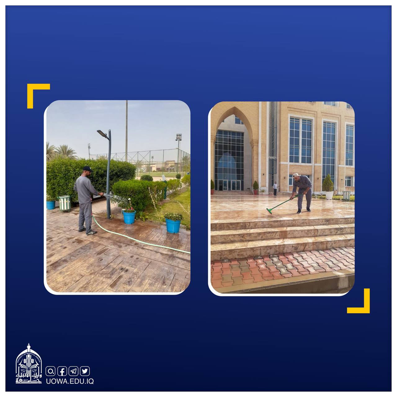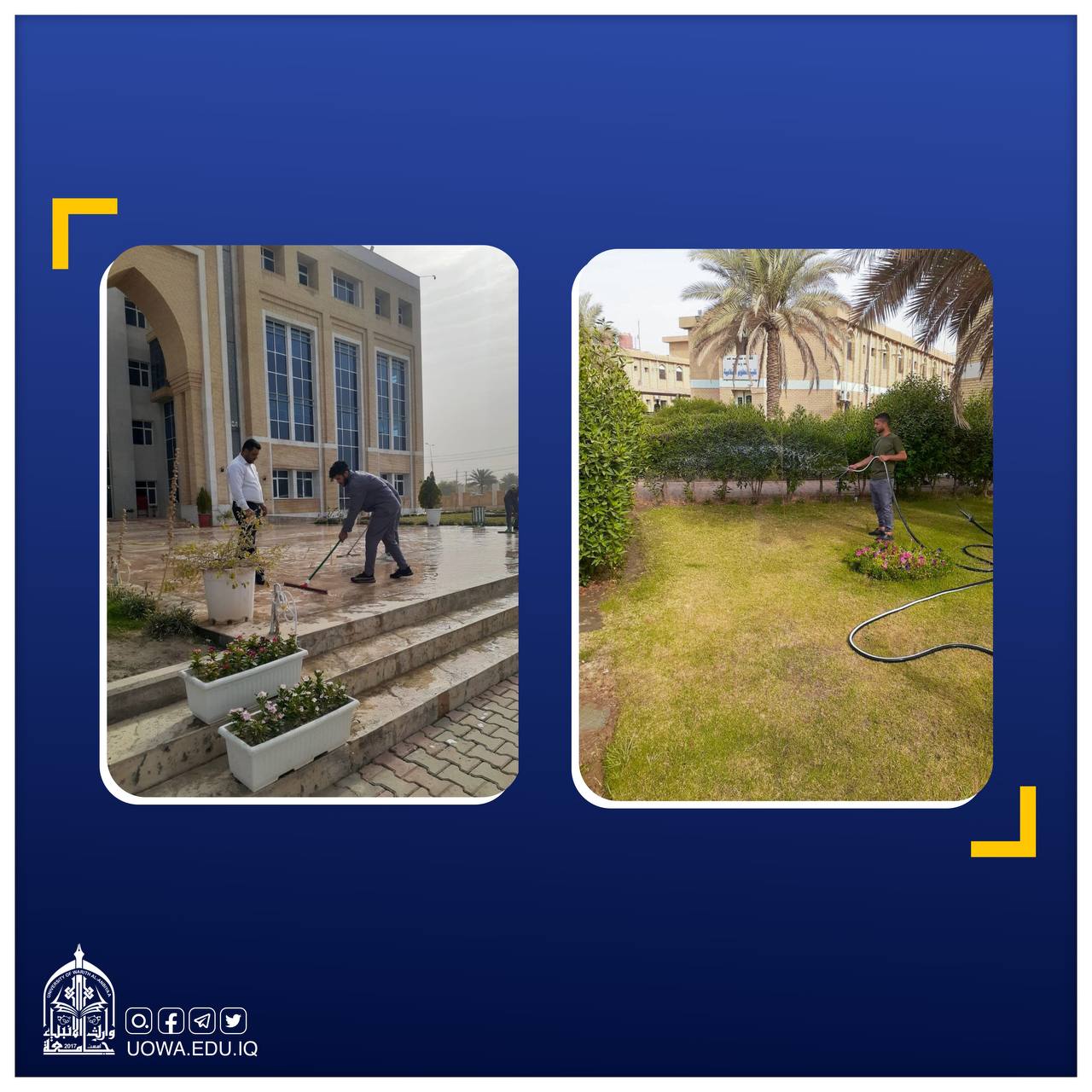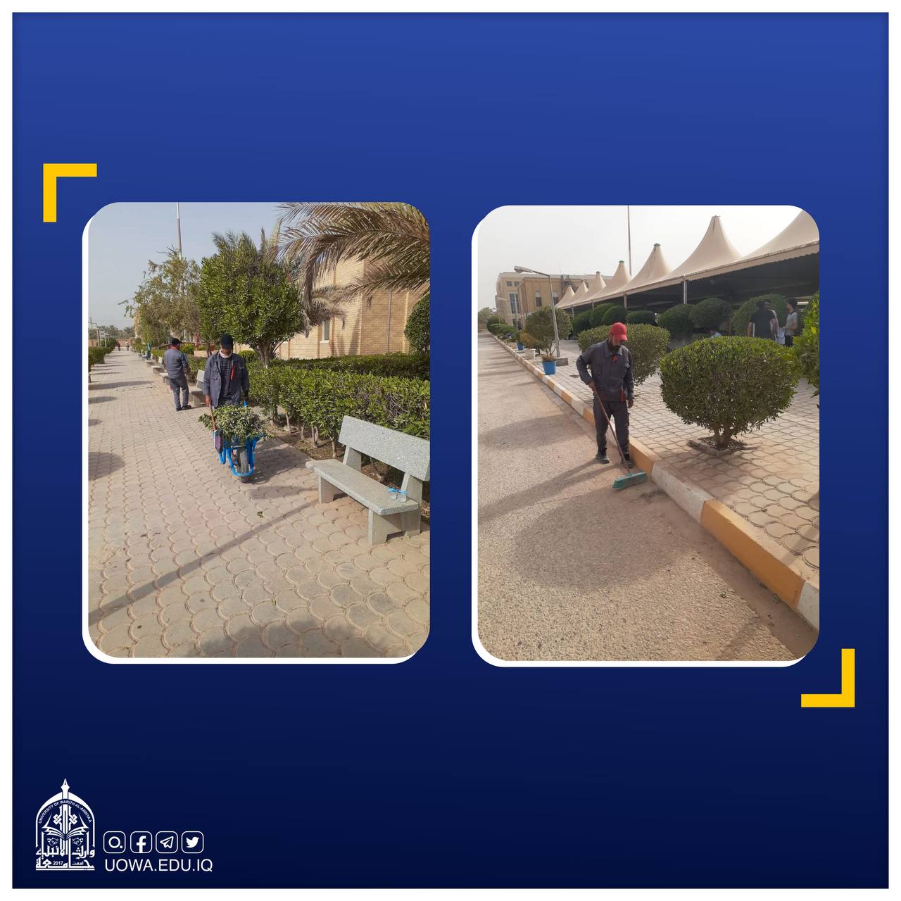 تواصل الملاكات الفنية التابعة للجامعة اهتمامها بالمساحات الخضراء ونظافة الباحات الداخلية والخارجية.
