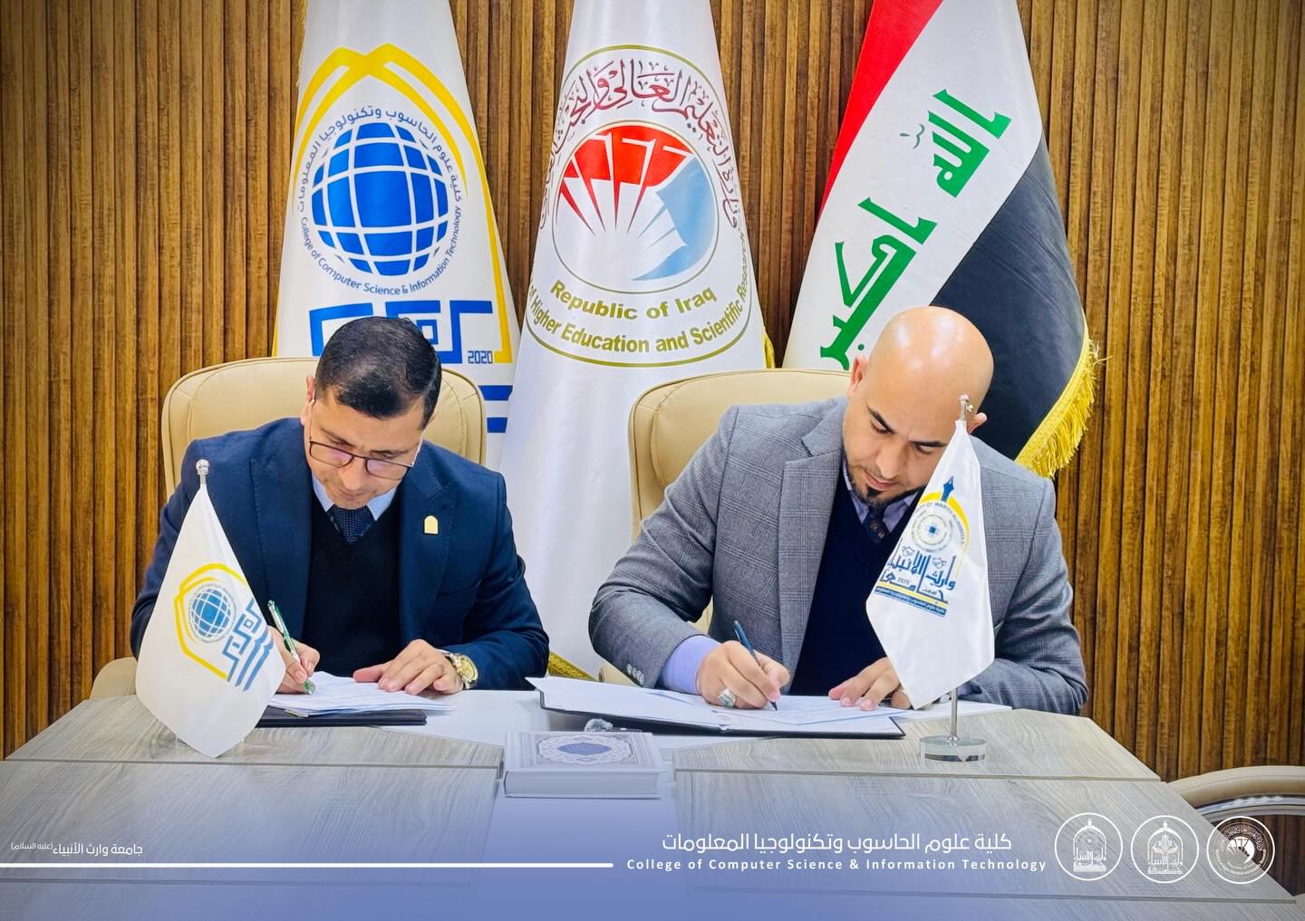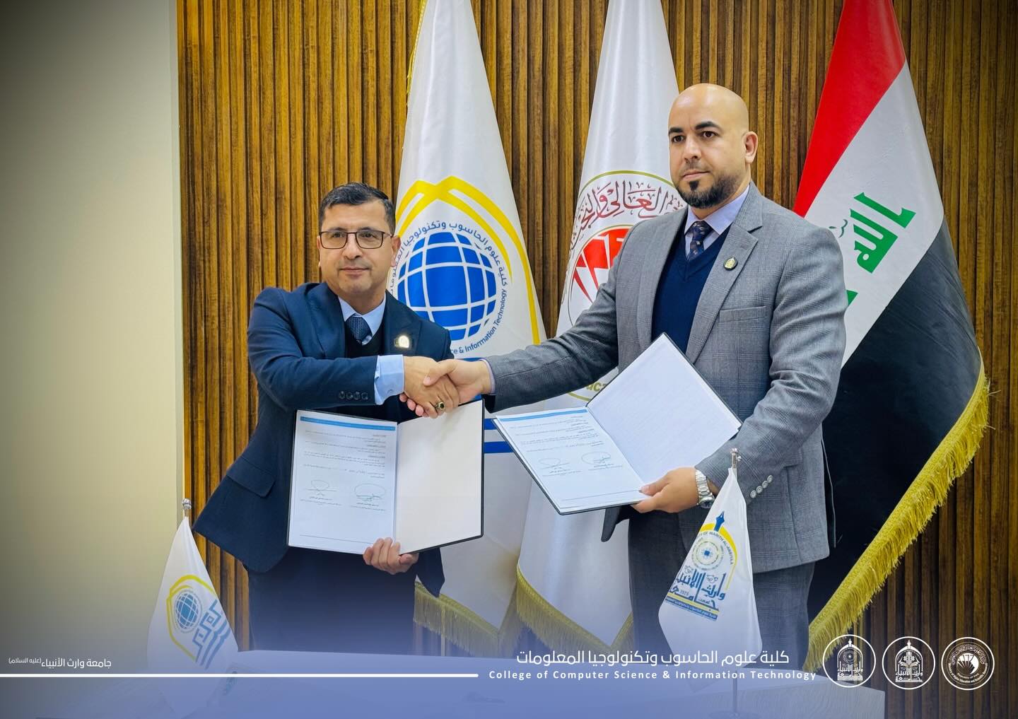 توقيع اتفاقية توأمة علمية بين كلية علوم الحاسوب وتكنولوجيا المعلومات في جامعة وارث الانبياء عليه السلام وجامعة كربلاء لتعزيز التعاون الأكاديمي