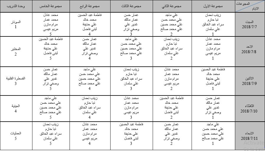 3- كل مجموعة تقدم تقرير حول نشاطات التدريب في الوحدات التدريبية