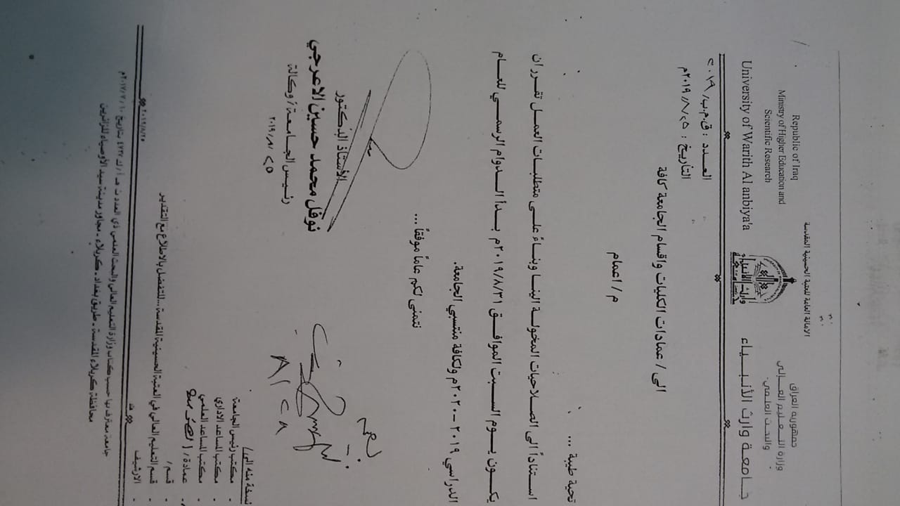 2021/03/25حرصاً من القائمين على جامعة وارث الأنبياء (ع) على استمرار المسيرية التعليمية بأفضل حالاتها و اضهارها بابها صورها.