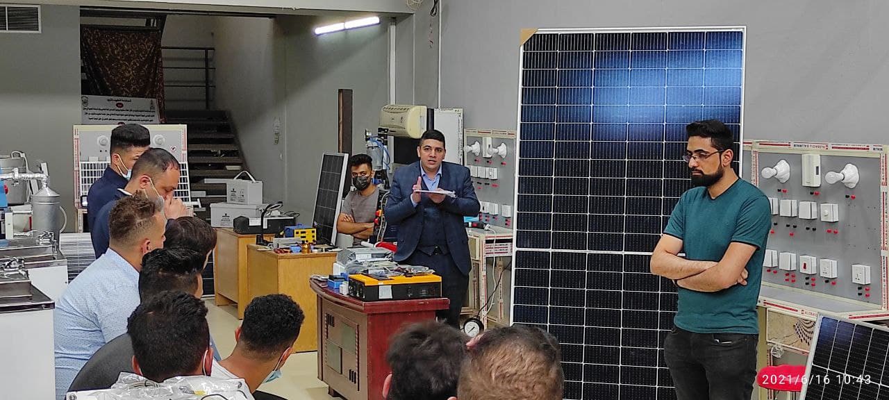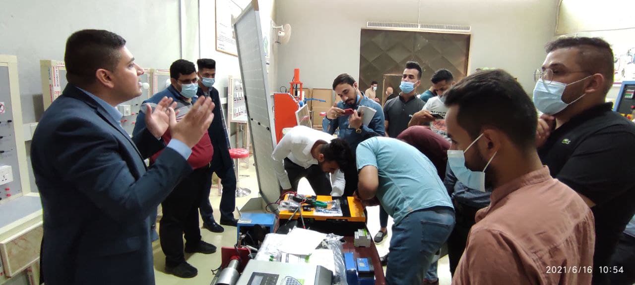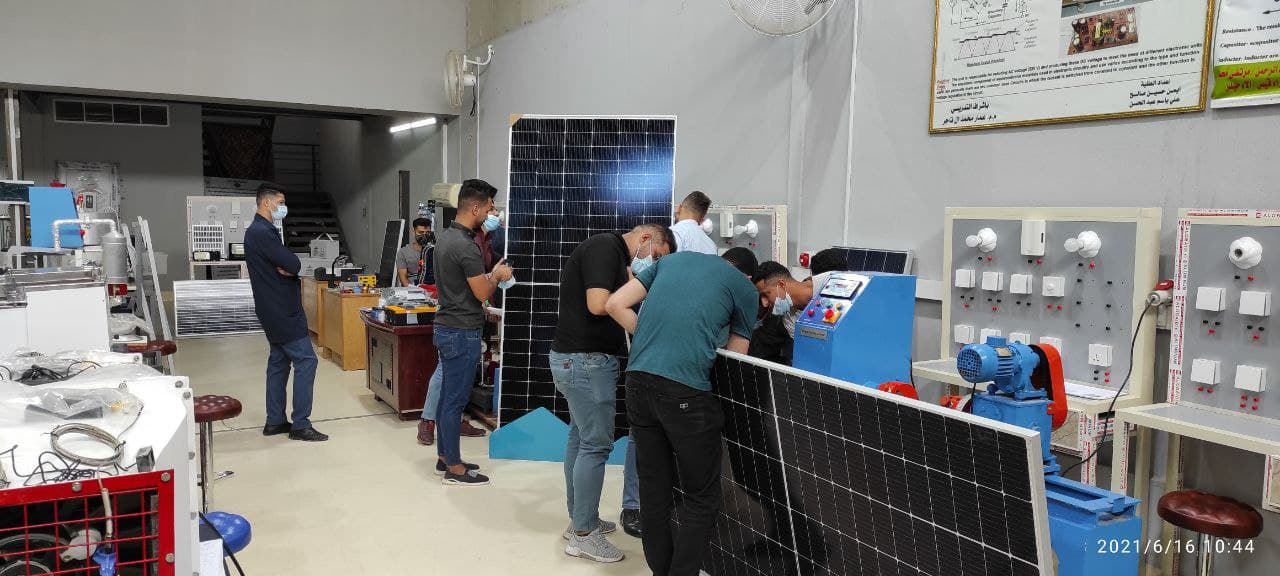 جانب من الورشة المقامة في قسم هندسة تقنيات التكييف والتبريد بخصوص نصب المنظومات الشمسية