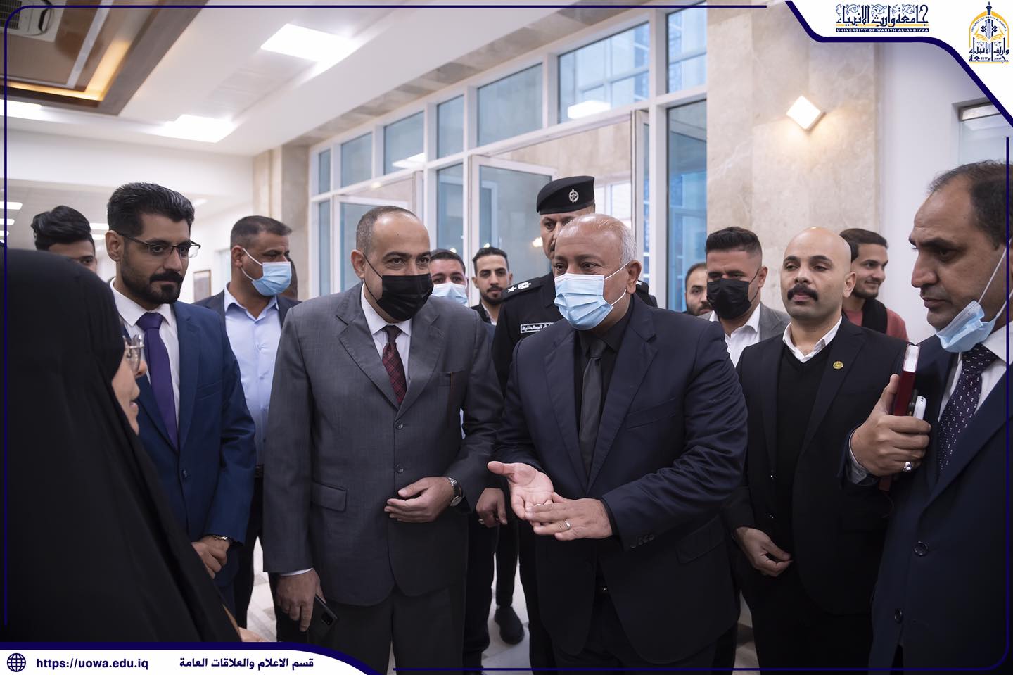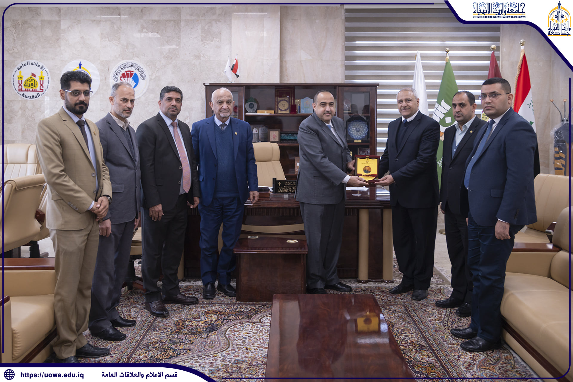 استقبلت رئاسة جامعة وارث الأنبياء(عليه السلام) متمثلةً بالسيد رئيس الجامعة الأستاذ الدكتور إبراهيم الحياوي ،السيد محافظ كربلاء المقدسة المهندس نصيف جاسم الخطابي.وتحدث السيد رئيس الجامعة الأستاذ الدكتور إبراهيم الحياوي قائلاً : سعدنا جداً بزيارة السيد محافظ كربلاء المقدسة الى الجامعة، اذ اطلع خلال جولته في اروقتها على البنى التحتية والقاعات الدراسية ،وحضر احد دروس التنمية البشرية للطلبة ،وابدى إعجابه الشديد بما تمتلكه الجامعة من إمكانيات علمية وعمرانية وتركيزها على جعل طلبتها متميزين في العلم والأخلاق.