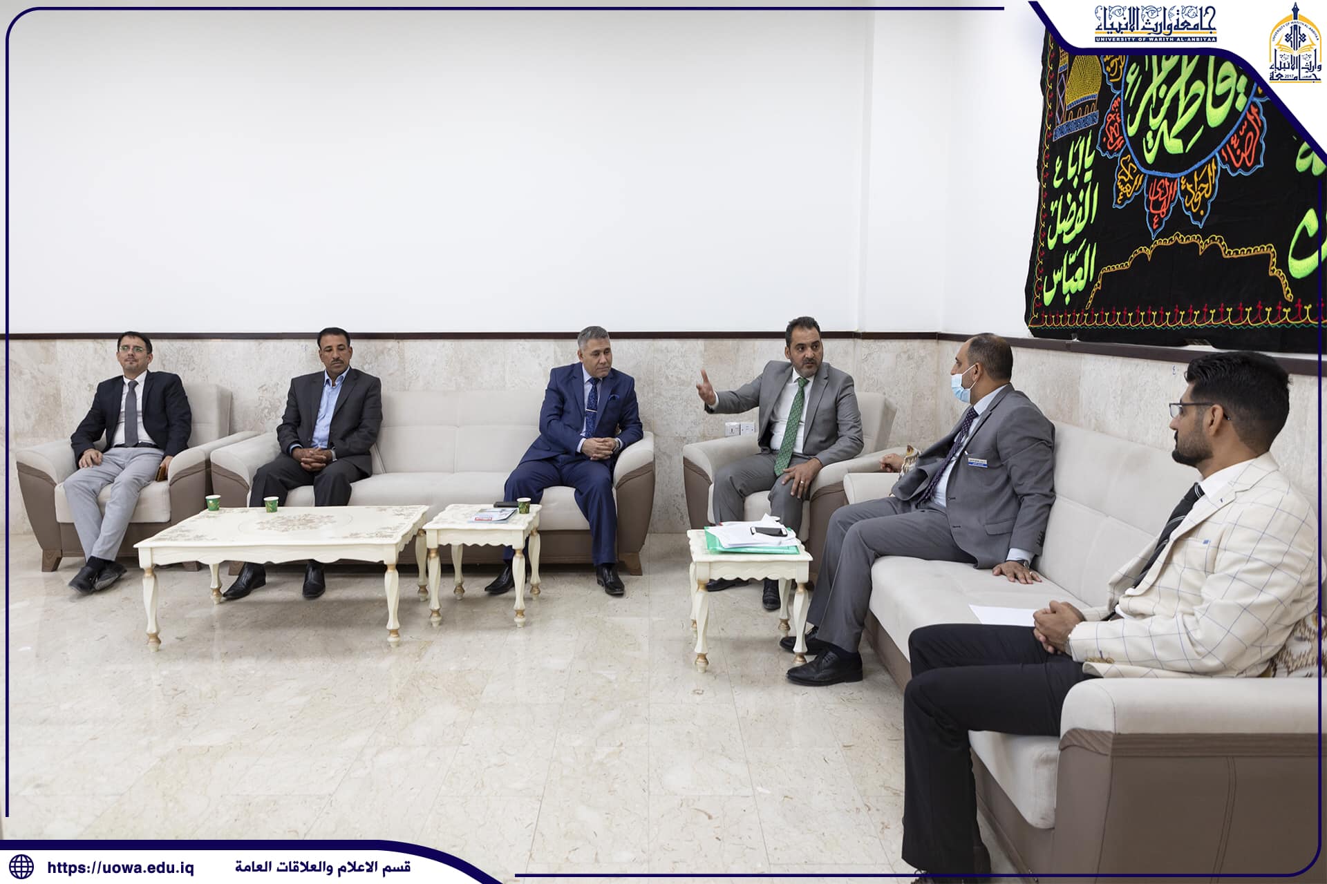 لمتابعة تنفيذ الإجراءات الوقائية واحصاء عدد الملقحين زارت لجنة من دائرة صحة محافظة كربلاء المقدسة حيث كان باستقبالهم السيد المساعد الإداري الأستاذ الدكتور نوفل الاعرجي حيث ابدى الوفد ارتياحة لماشاهده من التزام عالي بالإجراءات الوقائية داخل اروقة الجامعة وتجاوز عدد الملقحين ال90% من السادة اعضاء هيئة التدريس والطلبة يذكر ان رئاسة جامعة وارث الانبياء(عليه السلام) دائما ما تؤكد على السادة اعضاء هيئة التدريس والطلبة بالالتزام بتطبيق الإجراءات الوقائية داخل اروقة الجامعة.