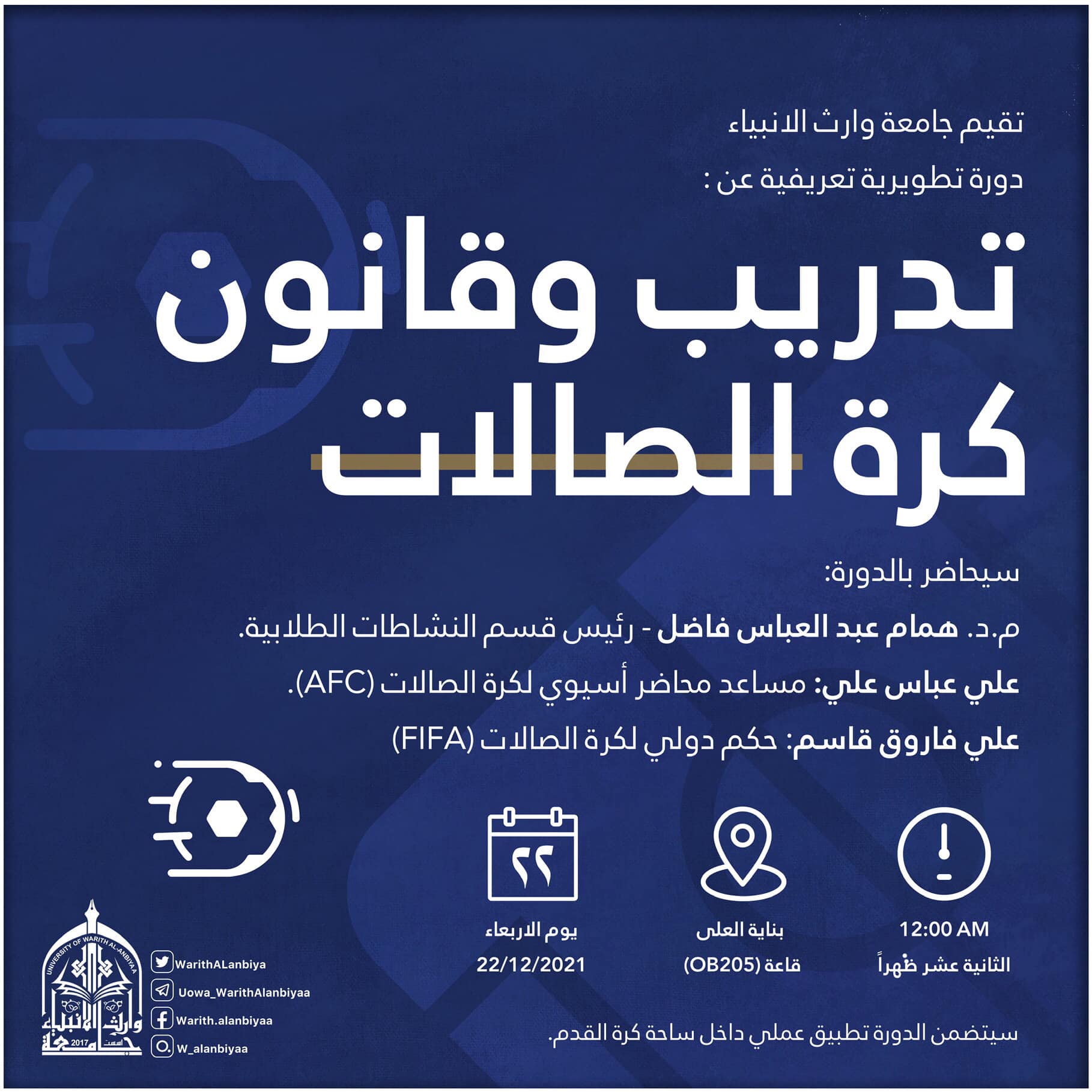 الاستعداد لإقامة بطولة بخماسي الكرة في جامعة وارث الانبياء(عليه السلام)