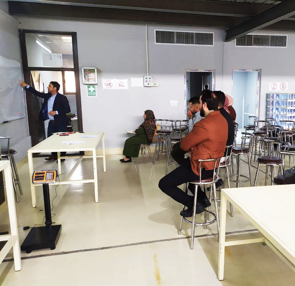 الجزء العملي تضمن المسوحات الأولية للمواقع وطرق توزيع أماكن الجهاز وبحسب الإمكانيات المتوفرة في الجهاز و مقارنه نتائج المسوحات بالأجهزة التقليدية مع النتائج التي تم الحصول عليها من جهاز اللفل. حيث ان الدورة استهدفت الكادر التدريسي والهندسي في الكلية.