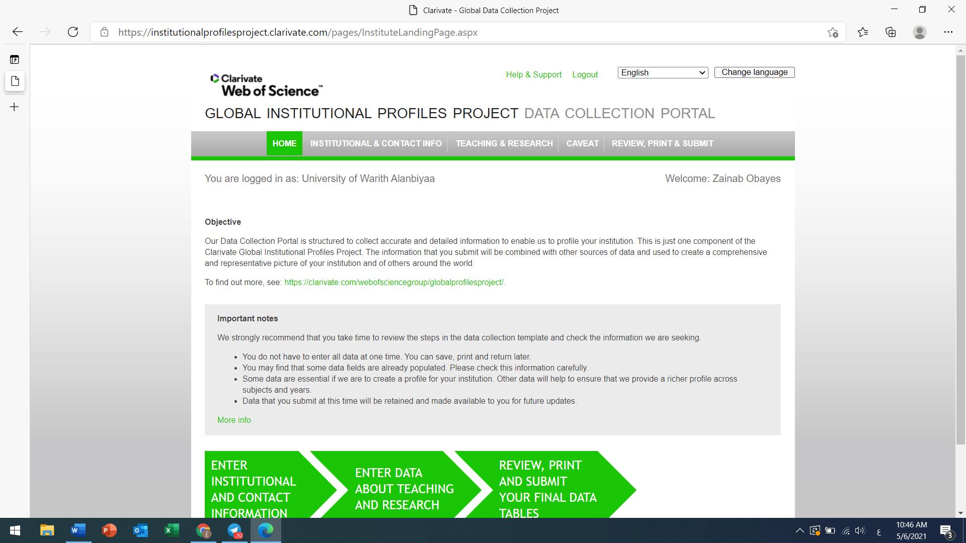 6.    تم انشاء بروفايل خاص بجامعة وارث الانبياء على صفحة التصنيف البريطاني العالمي The Times Ranking