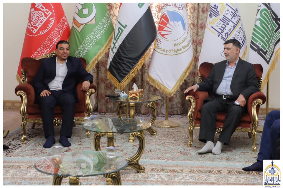 زار وفد من جامعة وارث الانبياء (عليه السلام) جامعة العميد التابعة للعتبة العباسية المقدسة متمثلاً بالسيد المساعد العلمي لرئيس الجامعة الاستاذ الدكتور عباس الدعمي والسيد عميد كلية الطب الاستاذ الدكتور فالح البياتي والسادة معاون رئيس قسم التعليم العالي ورئيس قسم الشؤون العلمية ، كان باستقبال الوفد السيد رئيس جامعة العميد الأستاذ الدكتور مؤيد الغزالي ، تباحث الطرفان في العديد الجوانب التي تخص الواقع التعليمي وآليات التعاون العلمي والأكاديمي وتبادل الخبرات بين الجامعتين لاسيما وقد افتتحت هذا العام كلية الطب في جامعة وارث الأنبياء (عليه السلام).