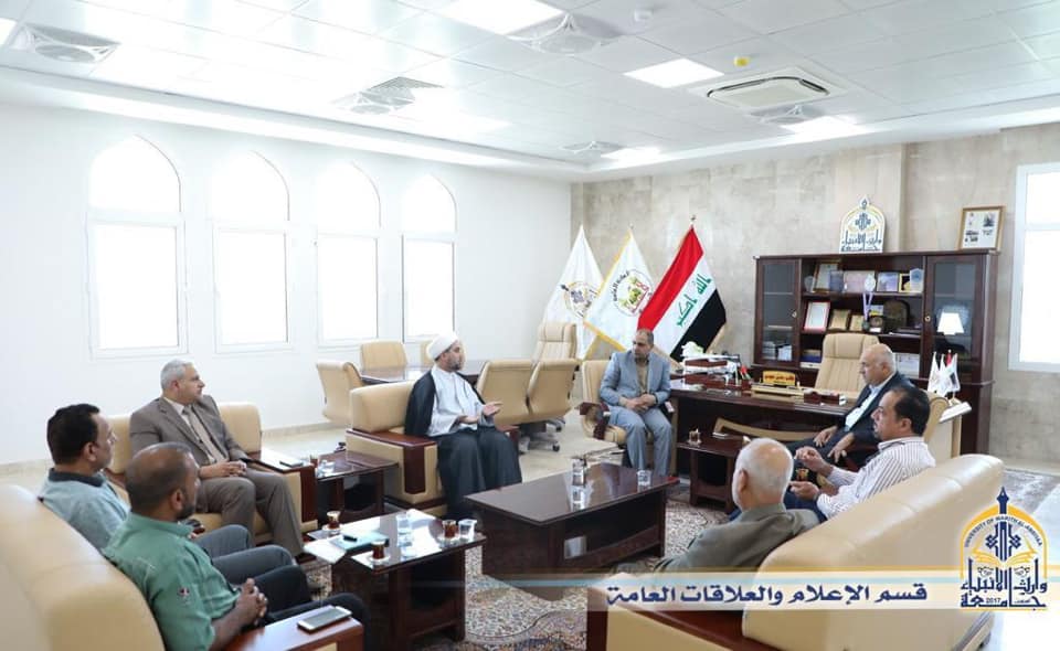 زار وفد رسمي ممثلاً عن جامعة وارث الانبياء (عليه السلام) وجامعة الزهراء (عليها السلام) التابعتين للعتبة الحسينية المقدسة برئاسةالسيد رئيس جامعة وارث الانبياء (عليه السلام) وكالةً الاستاذ الدكتور عباس الدعمي جامعة كربلاء لتقديم التهاني والتبريكات الى الدكتور باسم خليل السعيدي بمناسبة تسنمه رئاسة جامعة كربلاء وكالة .من جانبه قدم الدكتور السعيدي شكره للوفد المذكور على زيارتهم مؤكداً حرص جامعته على التعاون مع الجامعتين لاجل النهوض بالواقع التعليمي في بلدنا العزيز .