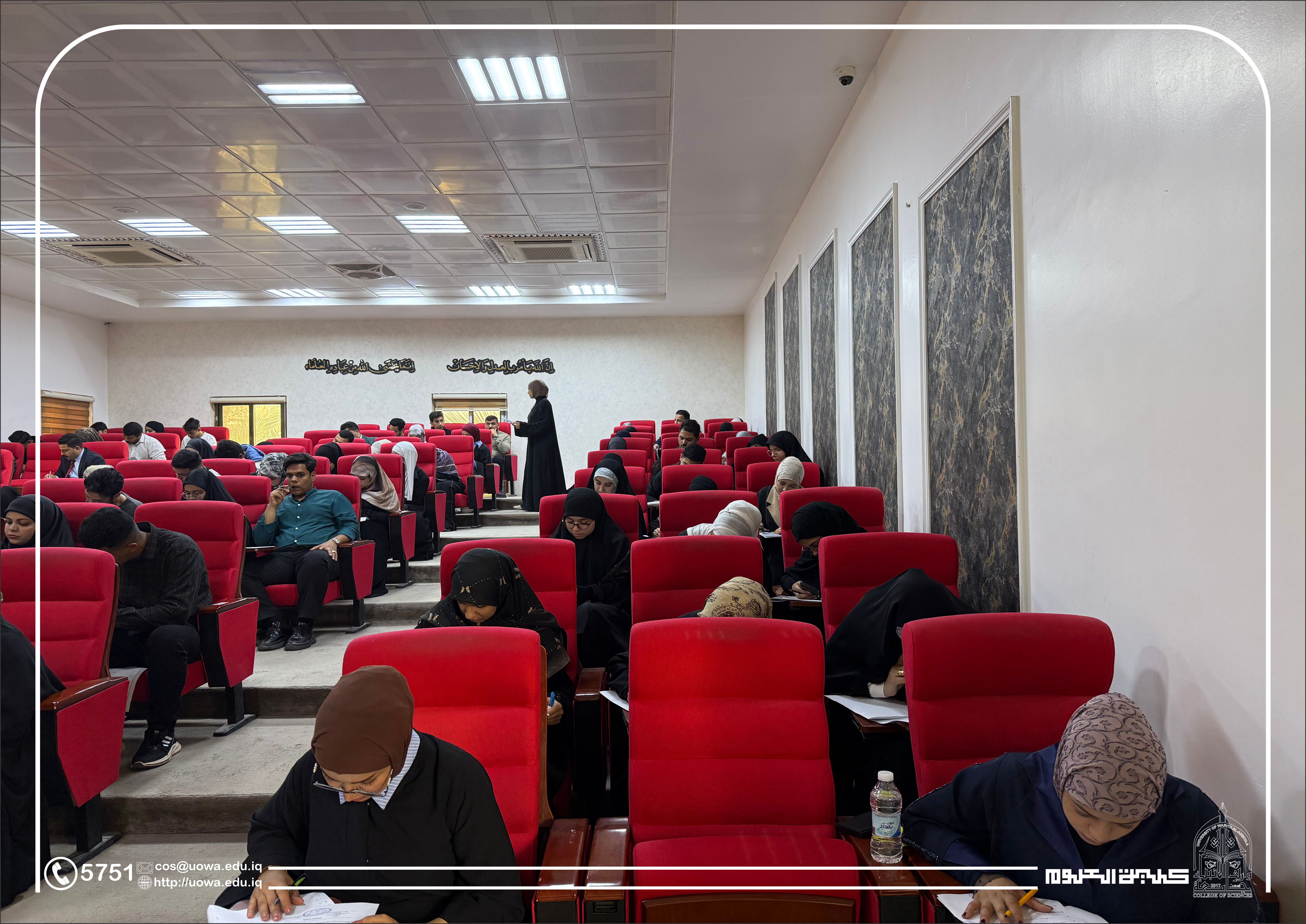 "وسط أجواء مفعمة بالتفاؤل والحرص على التفوق، دشن طلبة المرحلة الأولى في كلية العلوم بجامعة وارث الأنبياء (عليه السلام) امتحاناتهم النهائية للفصل الدراسي الأول، وتحديداً في تخصصي الفيزياء الطبية والأدلة الجنائية.