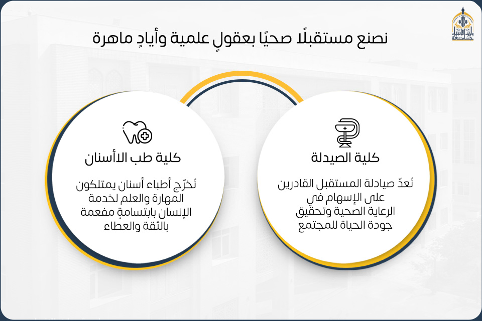 في إطار سعي جامعة وارث الأنبياء (عليه السلام) لإعداد كوادر طبية مؤهلة تسهم في الارتقاء بالقطاع الصحي في العراق،كلية الصيدلة وكلية طب الأسنان تقدم برامج أكاديمية متميزة