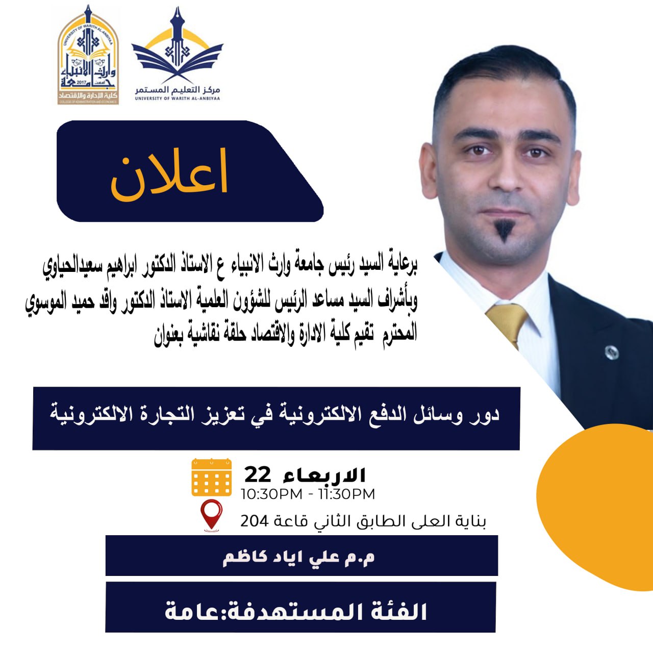 ضمن برامج تطوير المهارات الإدارية وتعزيز الكفاءة المؤسسية، نظّم مركز التعليم المستمر في جامعة وارث الأنبياء (عليه السلام) ورشة تدريبية متخصصة بعنوان:"إعداد المخاطبات الإدارية باستخدام برنامج Microsoft Word"، استهدفت الكوادر الإدارية في مختلف تشكيلات الجامعة.