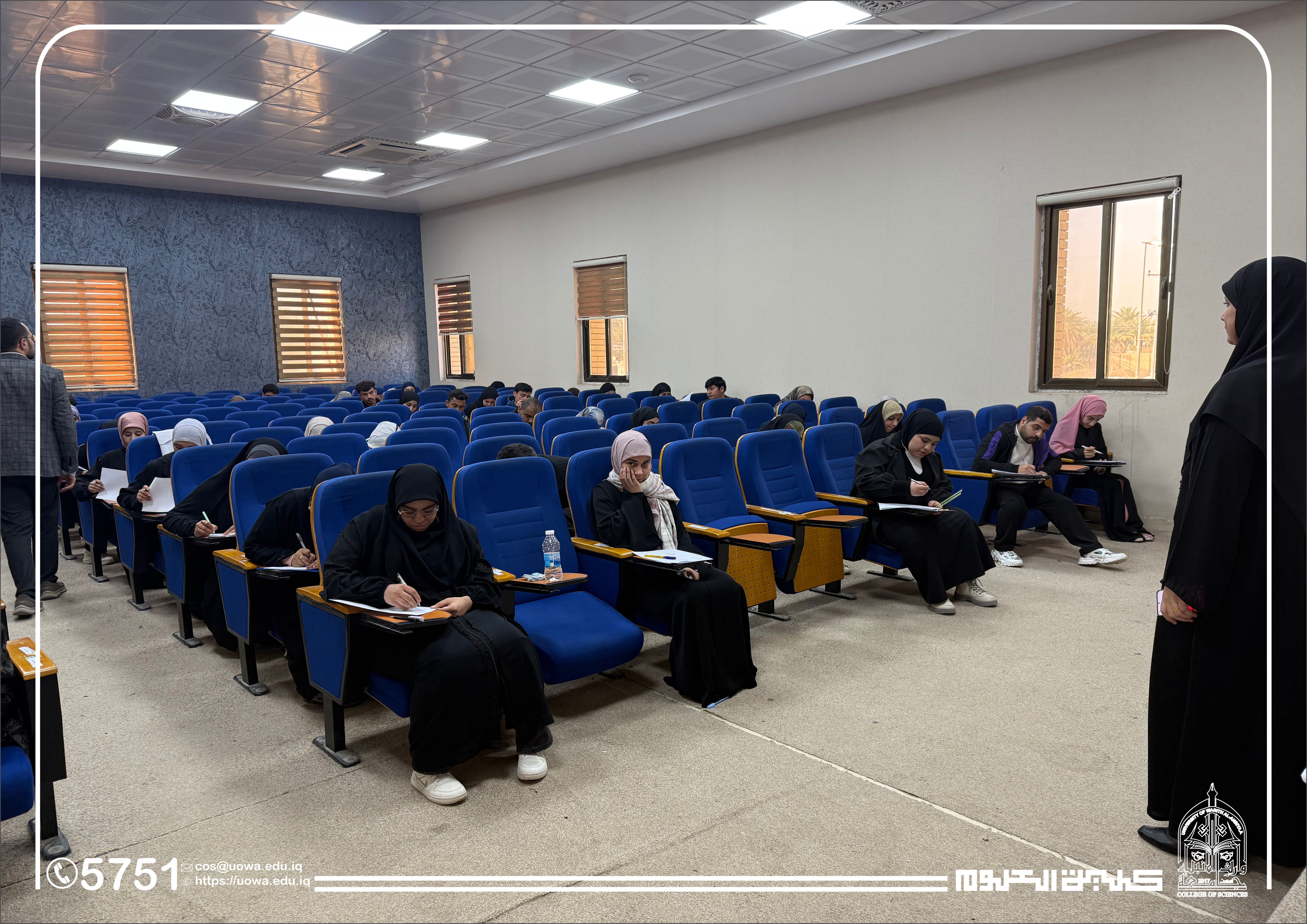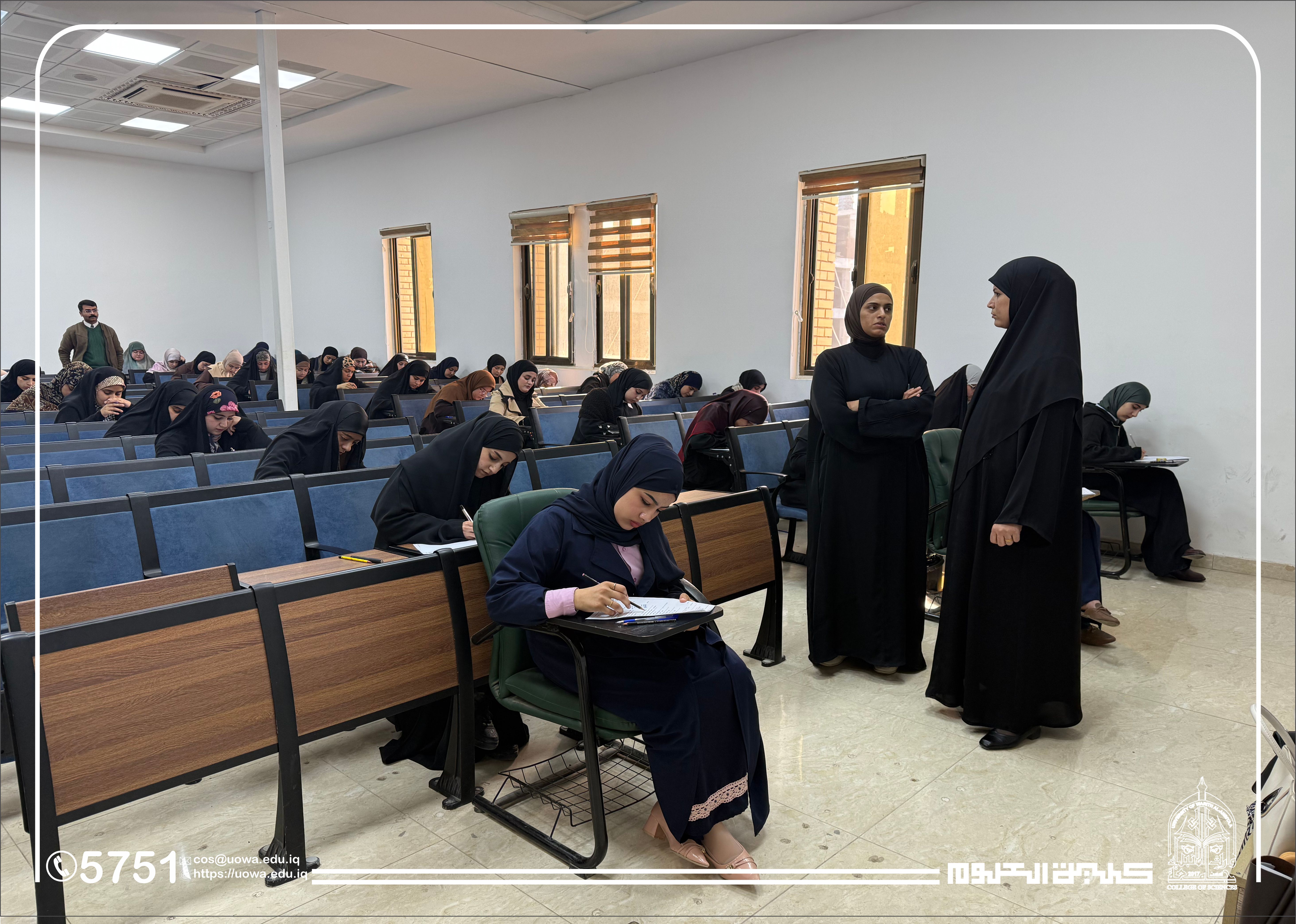 In the context of his continuous follow-up of the academic process and his commitment to providing an appropriate examination environment, the Dean of the College of Science at Warith Al-Anbiyaa University (peace be upon him) conducted an inspection tour of the examination halls to monitor the progress of the midterm examinations for first-year students in the Departments of Medical Physics and Forensic Evidence.