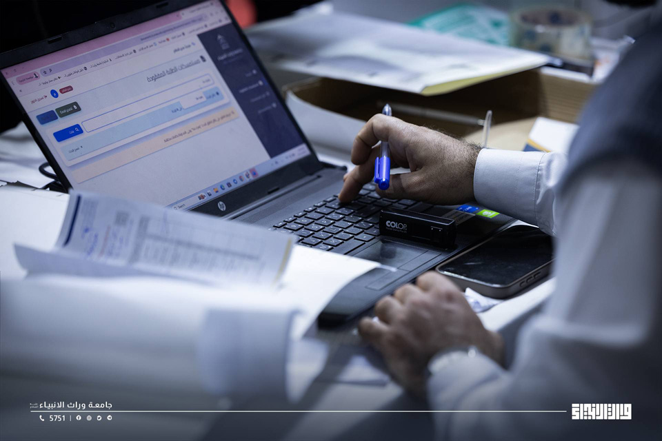 Within the framework of institutional follow-up and the development of administrative performance, the President of Warith Al-Anbiyaa University, Professor Dr Ibrahim Saeed Al-Hayyawi, accompanied by the Scientific Assistant, Professor Dr Waqed Al-Moussawi, held a meeting with the University’s registration team following the commencement of official attendance by first-year students.