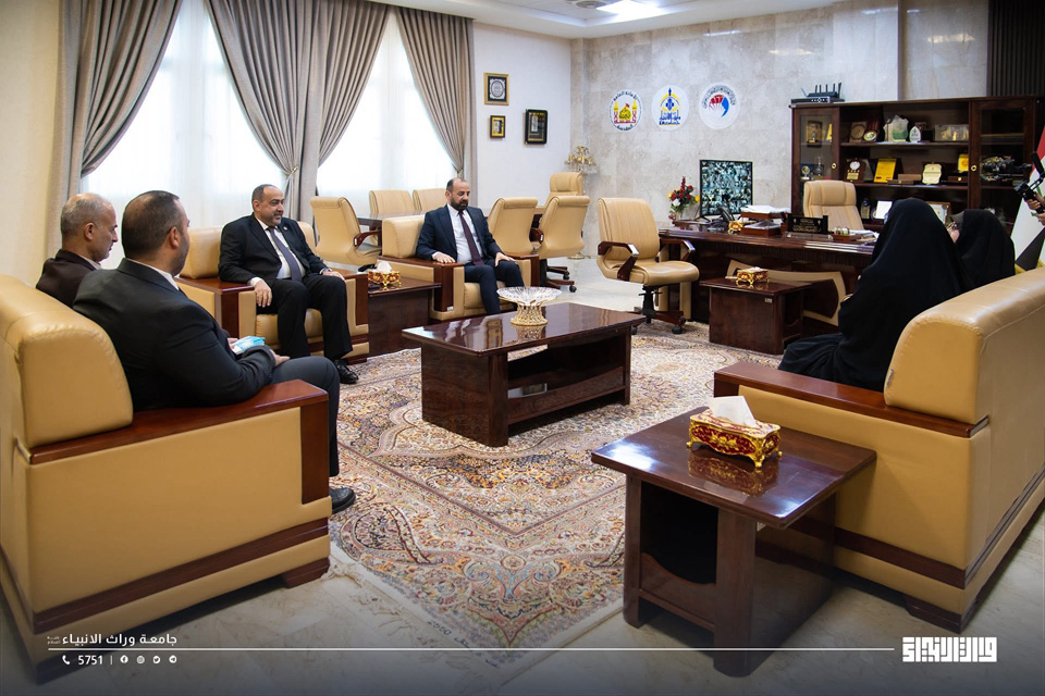 The Vice President for Administrative Affairs, Professor Dr. Nawfal Al-Araji, received a delegation from the Karbala Governorate Police Command headed by the Director of the Department for Martyrs and the Wounded.