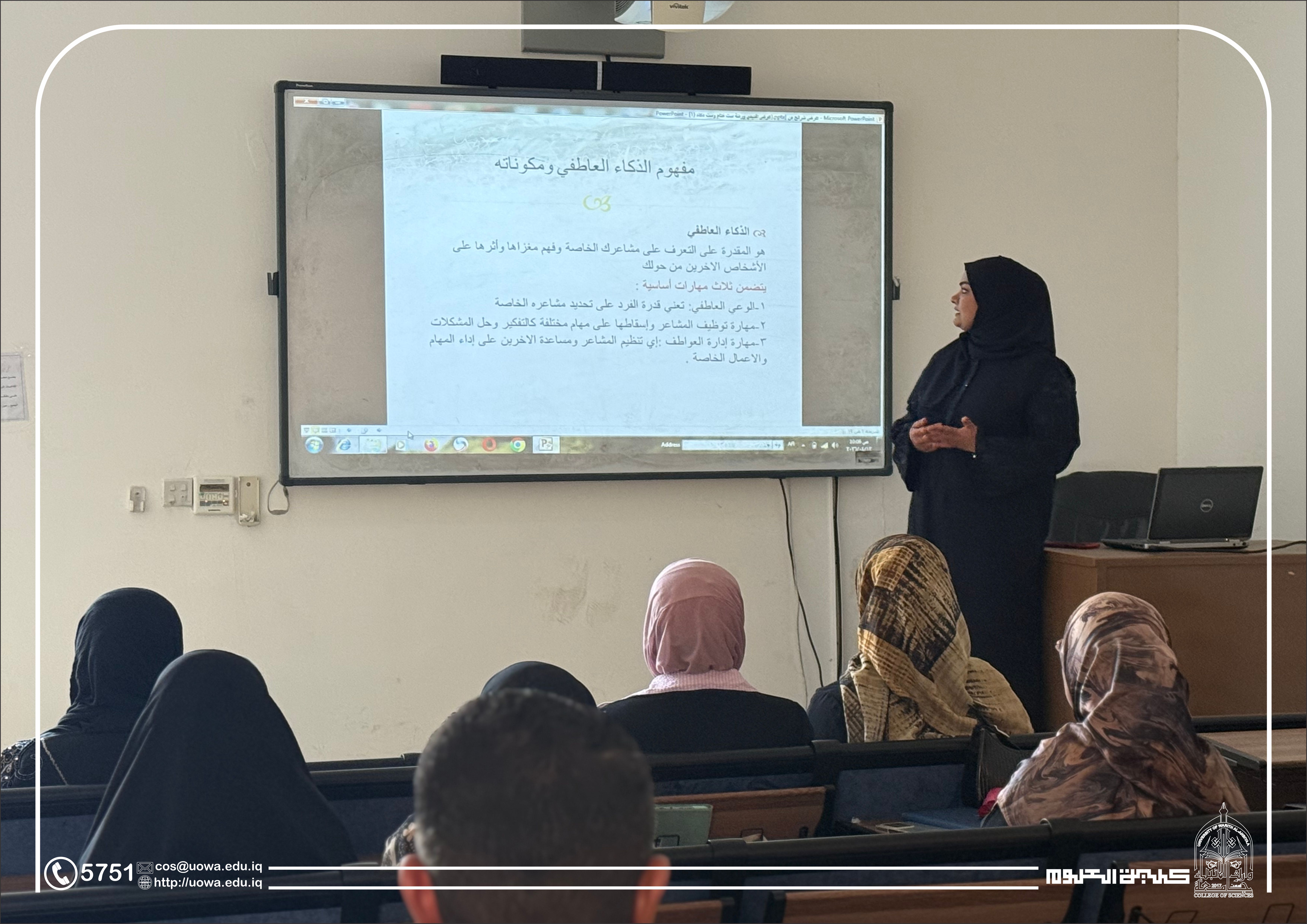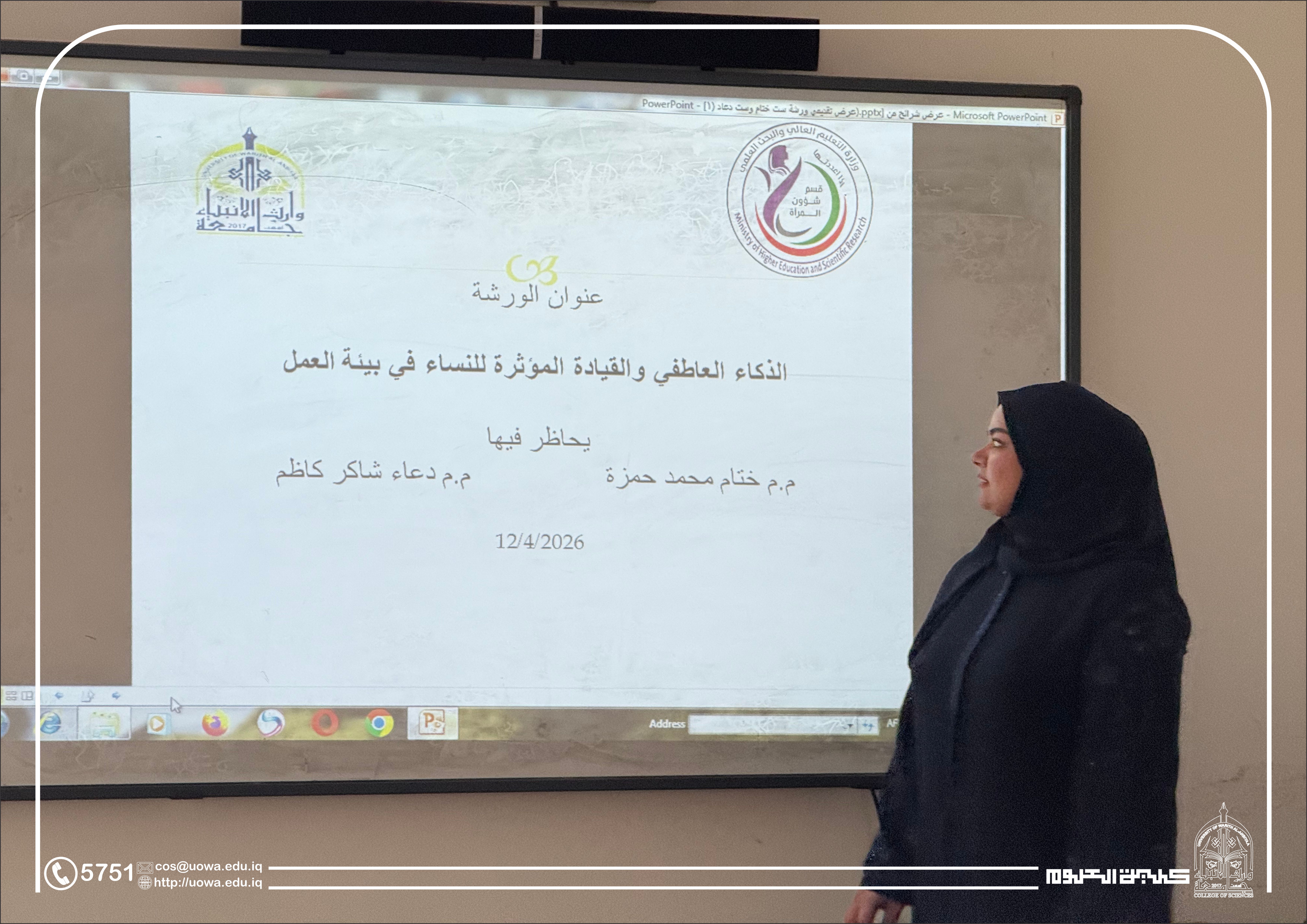 A training workshop entitled “Emotional Intelligence and Influential Leadership for Women in the Workplace” was conducted by Assistant Lecturers Khatam Mohammed Hamza and Doaa Shaker Kazem, with the aim of developing leadership skills and enhancing women’s competencies in modern work environments.