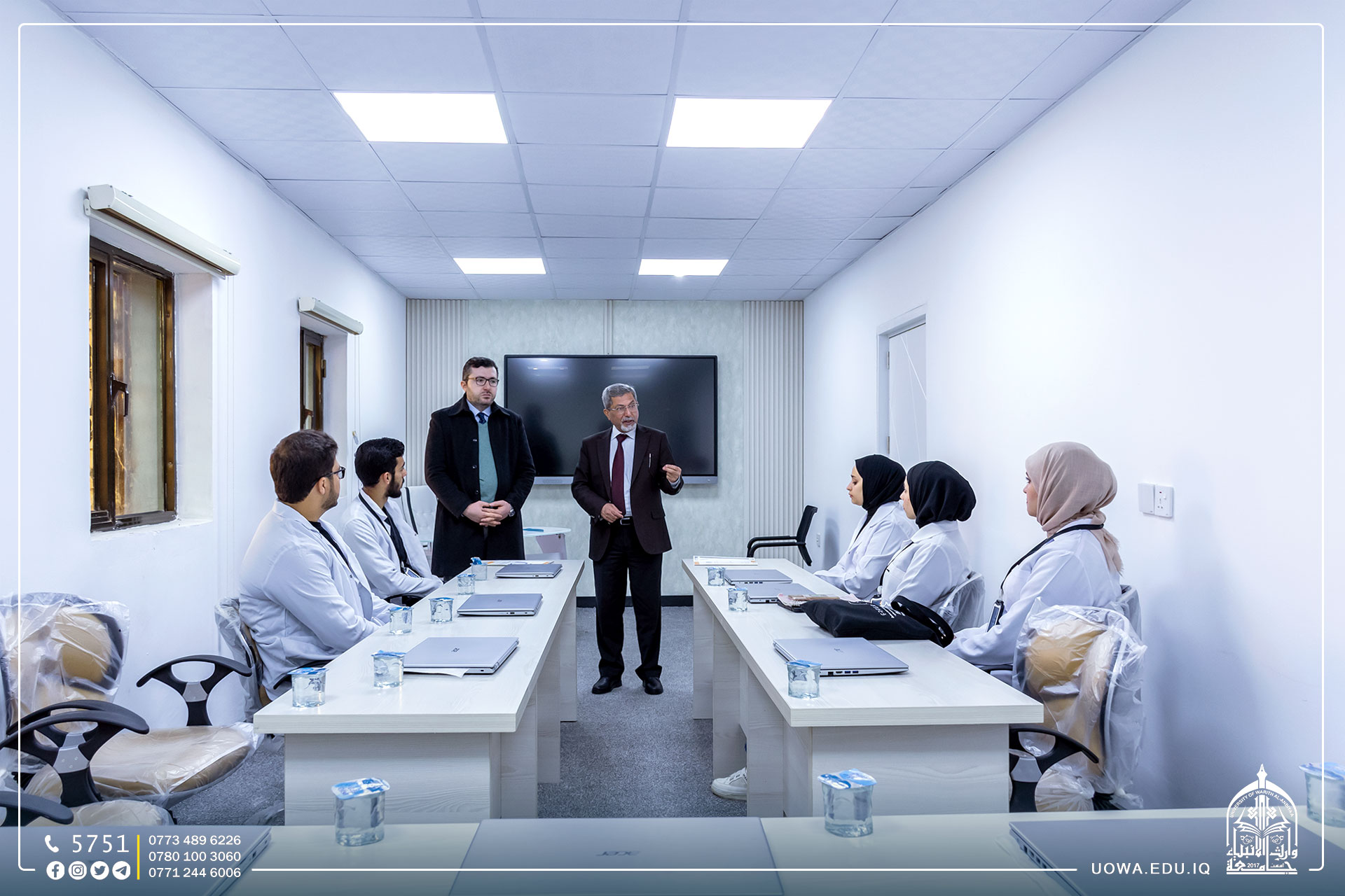 An introductory tour for the Faculty of Medicine students at Warith Al-Anbiyaa University at the "National Center for Medical Competence Assessment" of the Health and University Education Authority, where Dr. Sabih Al-Mashhadani gave an introductory explanation of the center and its importance in practical training for medical students.