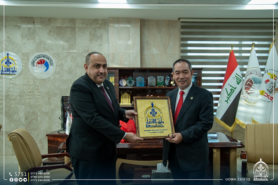 At the end of the visit, the University President, Professor Dr. Ibrahim Al-Hayawi, presented gifts of appreciation to the members of the delegation.