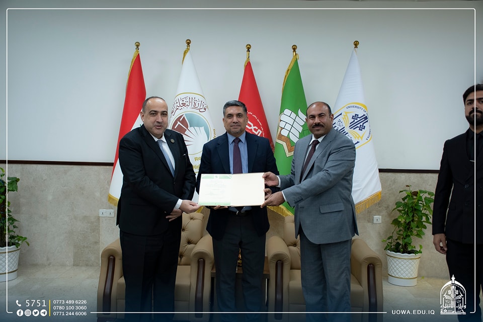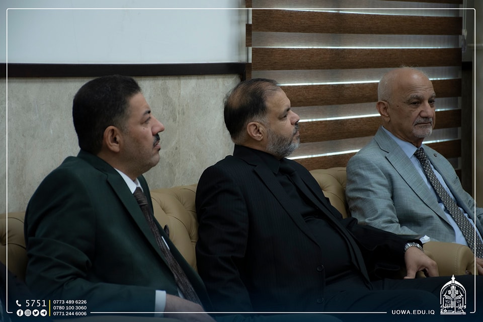 The delegation was received by Mr. Ibrahim Al-Hayawi, the President of the University, along with Dr. Munir Al-Daami, the head of the Academic Union Branch in Karbala, and Sheikh Rabaah Hussein Al-Rabaah, a legal expert.