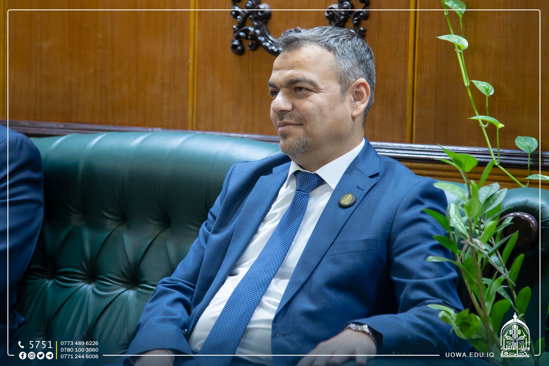 The President of the University, Dr. Ibrahim Al-Hayawi, received Dr. Basim Khalil Al-Saadi, the President of the University of Karbala, along with Dr. Akram Al-Yasiri, the Administrative Assistant. They visited the university to offer their congratulations to Dr. Hussein Hadi Hussein, Assistant Professor, on the occasion of his assumption of the deanship of the College of Engineering. They pray for his success in serving the scientific journey in our beloved country.