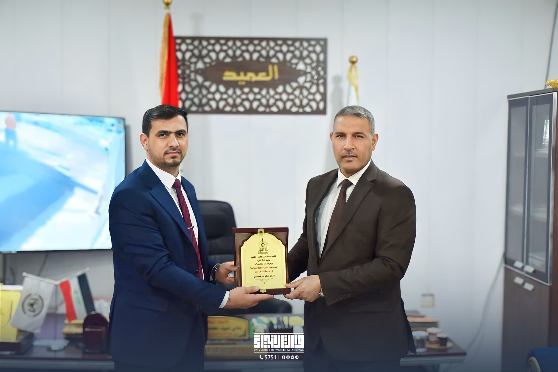 A delegation from the College of Management and Economics at the University of Warith Al-Anbiyaa (peace be upon him), led by the Assistant Dean, Dr. Fahad Mughaimish Al-Shammari, visited the College of Industrial Management for Oil and Gas at the University of Basra for Oil and Gas. The delegation was received by the Dean of the College, Dr. Sami Obeid Al-Tamimi.