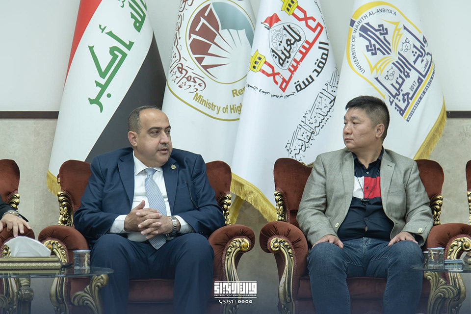 Within the framework of scientific and cultural communication between universities, a delegation from the Chinese University of Nanjing visited the University of Warith Al-Anbiyaa (PBUH). They were received by His Excellency the President of the University, Professor Dr. Ibrahim Saeed Al-Hayawi, Assistant President of the University for Scientific Affairs, Professor Dr. Waqed Al-Moussawi, in addition to a number of deans and heads of scientific and administrative departments.