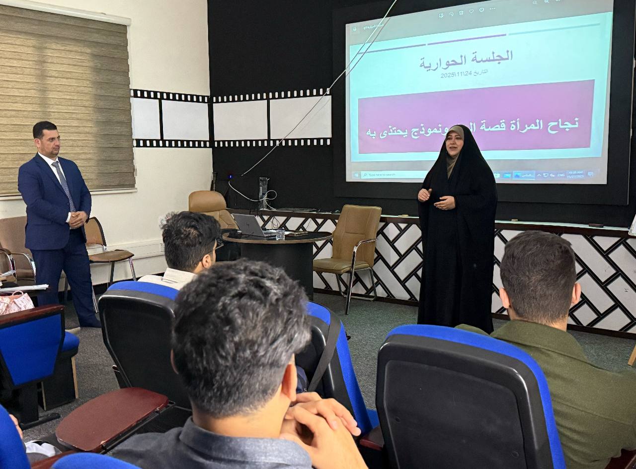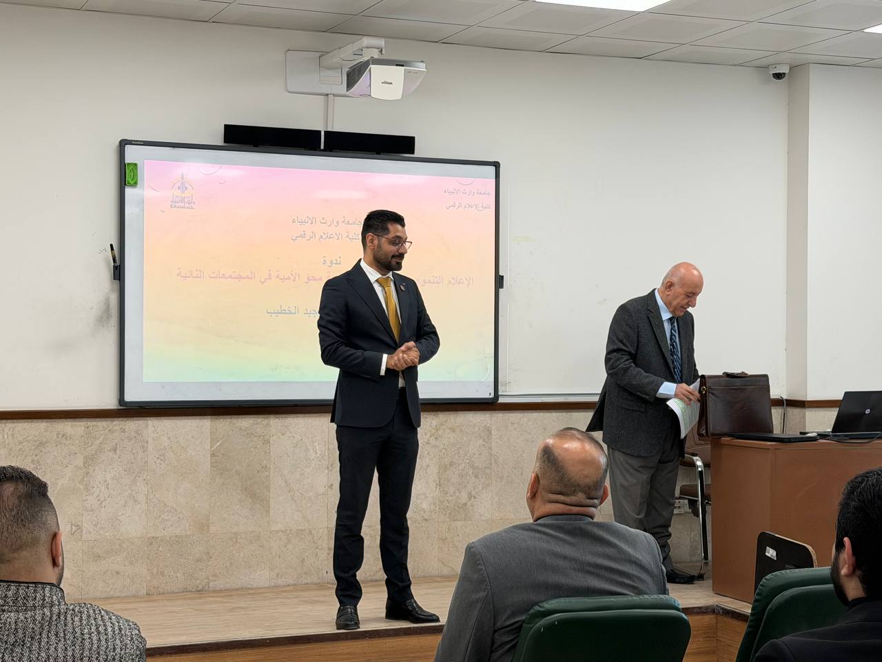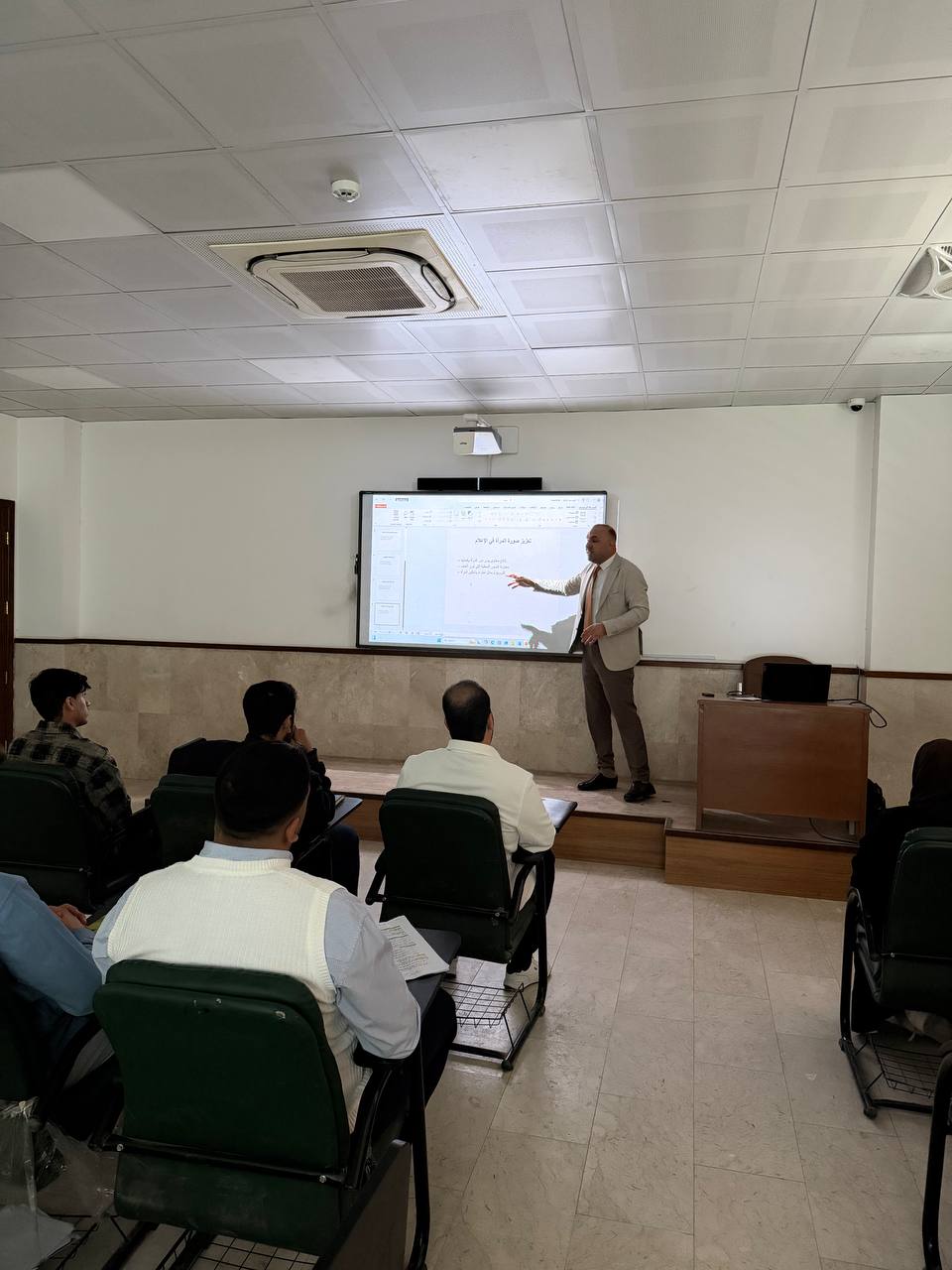 The College of Islamic Sciences held an academic symposium titled "The Crimes of the Ba'ath Party in Iraq: A Historical, Political, and Legal Analysis," presented by Dr. Iyad Karim and attended by a group of students.