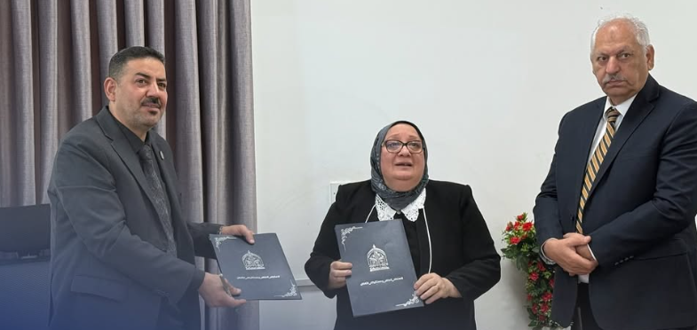 With God's grace, a memorandum of understanding was signed between the College of Medicine at Warith Al-Anbiya University (peace be upon him) and the Mercy Organization for Child Health, in the presence of Professor Dr. Ali Abdul Saadoun Al-Ghazi, Dean of the College, and Dr. Iman Rashid Al-Obaidi, Head of the Organization.