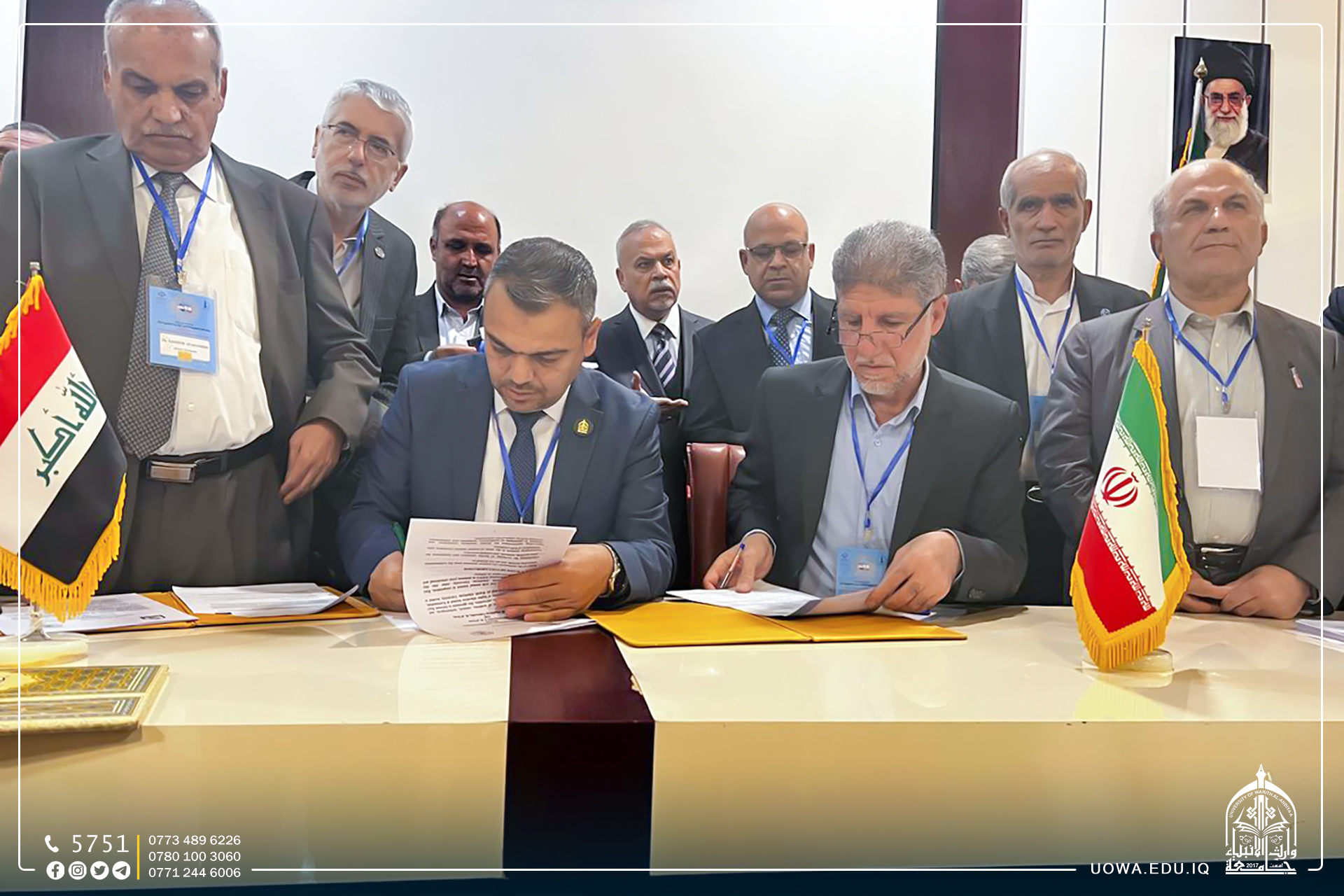 A delegation from the University of Wraith Al-Anbiyaa (peace be upon him), led by the Scientific Assistant, Professor Dr. Waqad Al-Mousawi, and including Dr. Mohamed Jamal Al-Taif, the Head of the Department of Government Communication and Media, has signed several scientific agreements with Iranian universities. These universities include Al-Alamah Tabatabai University, Sharif University of Technology, Razi University, and Science and Industry University.