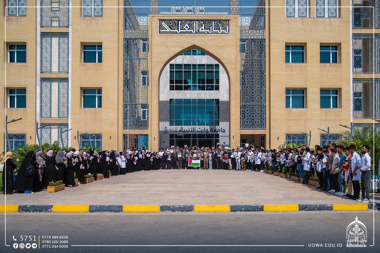 The University of Warith Al-Anbiyaa (peace be upon him) organizes a solidarity stand with the Palestinian people and reaffirms its support for the brave Palestinian people in their resistance against the occupiers. The whole world is called upon to stand against this terrible brutality and prevent the Israeli forces from executing their plans to cause more harm to the oppressed Palestinian people. All of this is happening in full view and hearing of the entire world, with no deterrent or hindrance. There are even those who support these criminal acts under the pretext of self-defense. We ask Allah to assist them and grant them victory, for victory comes only from Allah, the Mighty, the Wise.