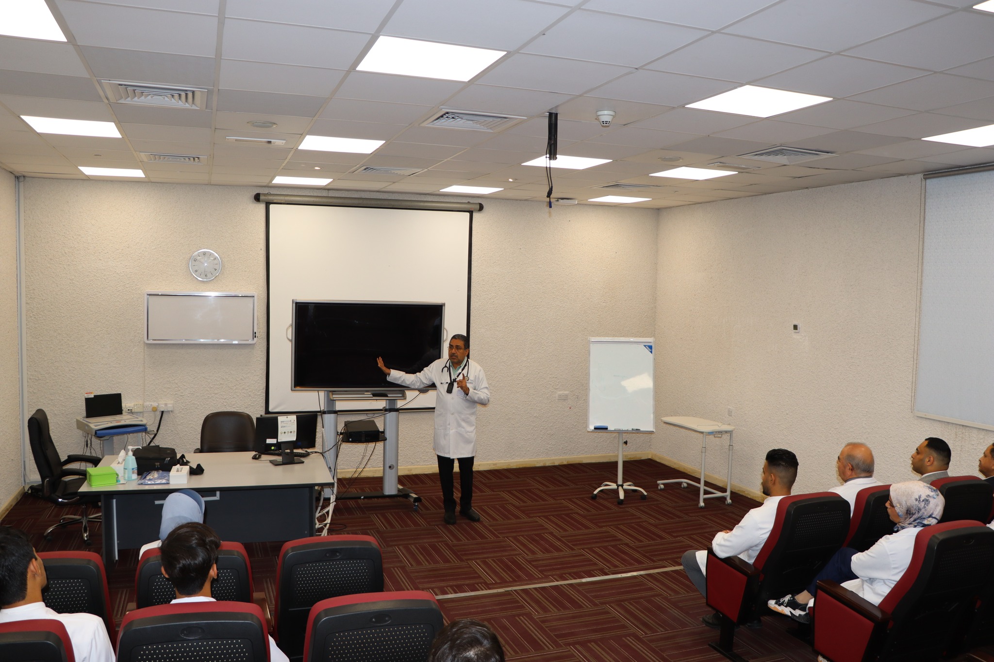 Under the supervision of Professor Dr. Munim Al-Shawk, Dr. Nasreen Jawad Kazim, and Dr. Sari Ghassan, medical students have commenced practical training courses at Saqr Hospital and Ras Al Khaimah Medical and Health Sciences University.