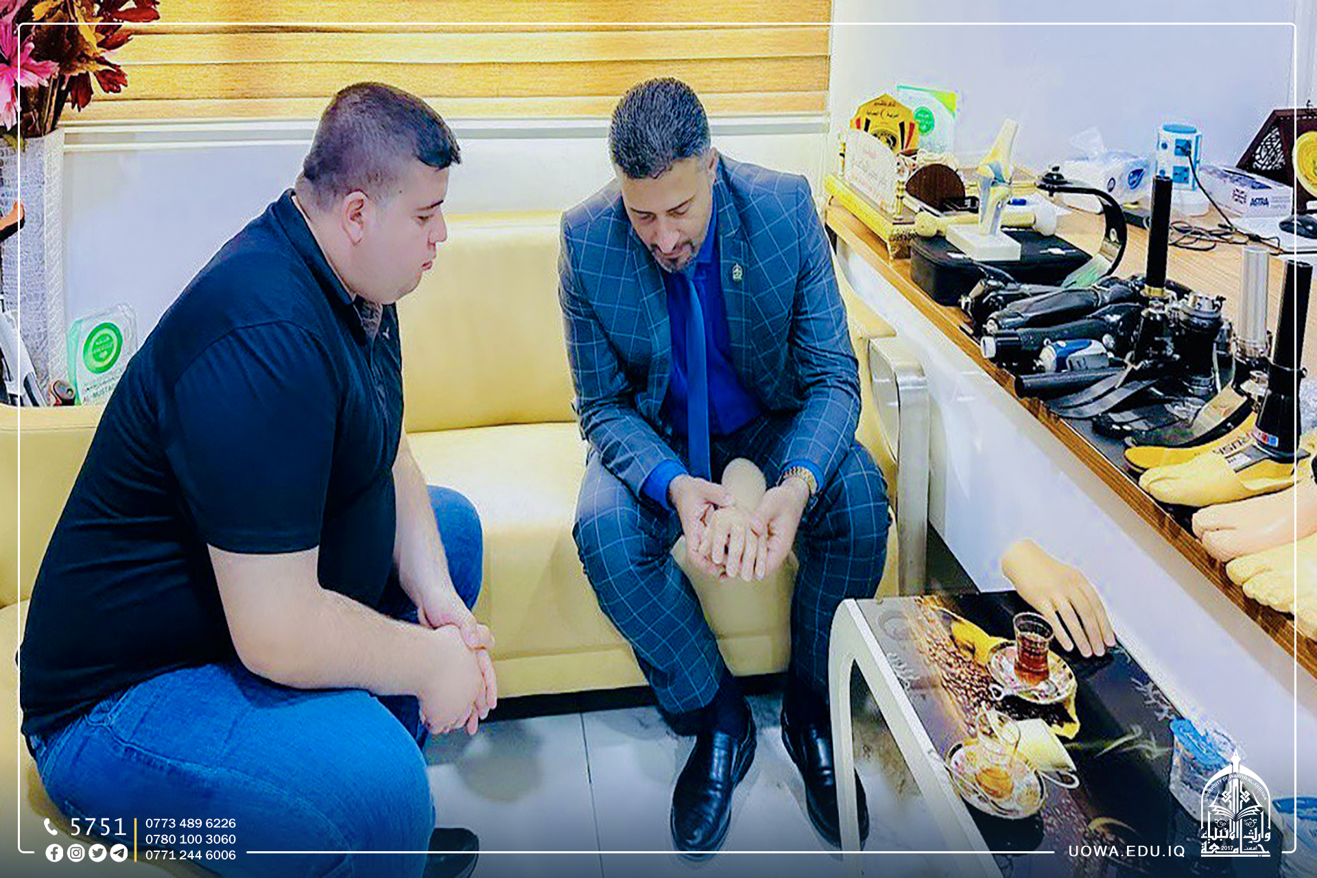 In preparation for qualifying and training students and graduates of the Biomedical Engineering Department and appointing them to the Warith Derman Center for Prosthetic Limbs of the Holy Shrine of Imam Hussein, the team of the Warith Center for Entrepreneurship, Innovation and Development visited the Warith Derman Center for Prosthetic Limbs and met with the Center’s assistant director, Engineer Haider Al-Qurain.