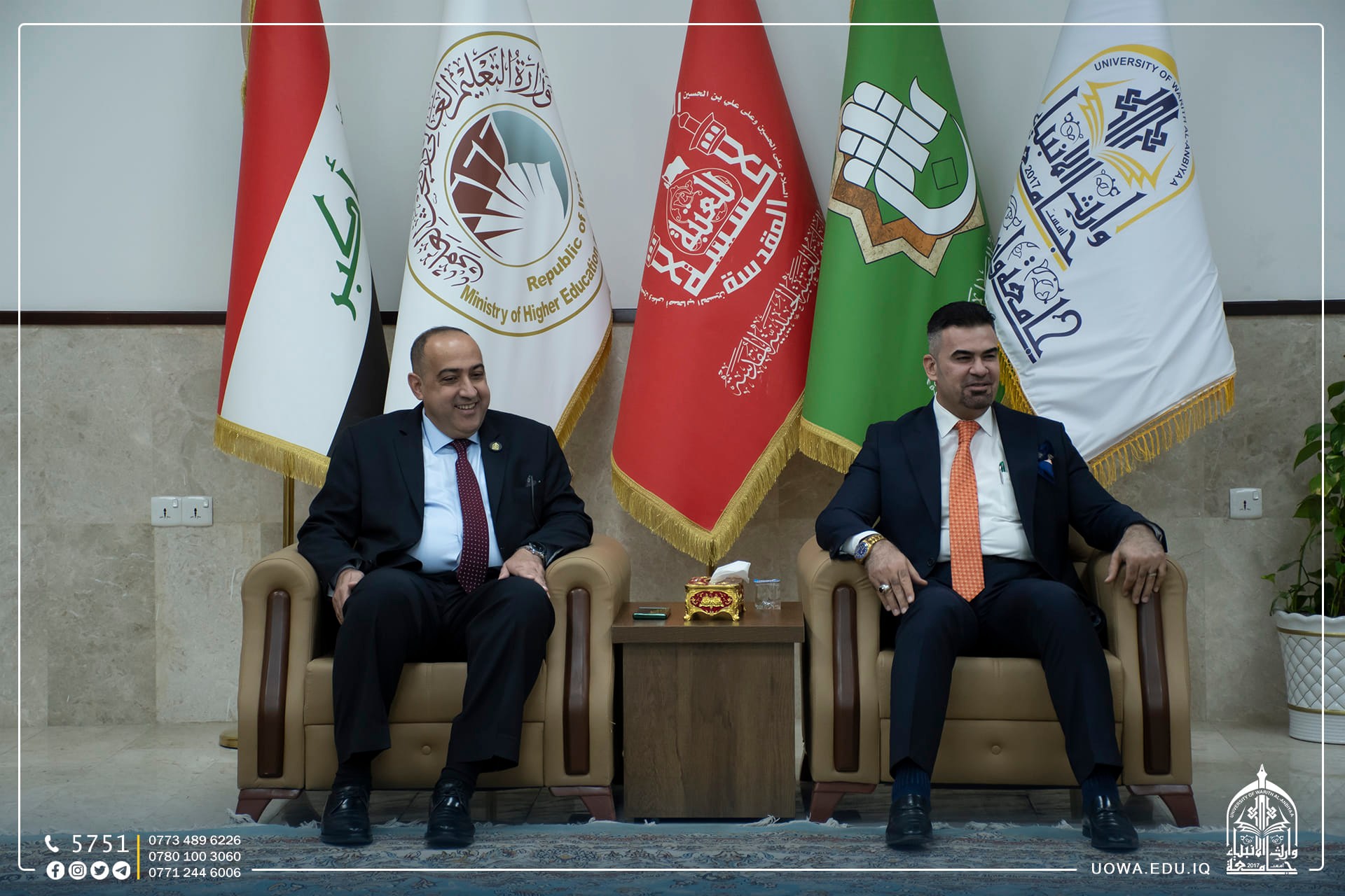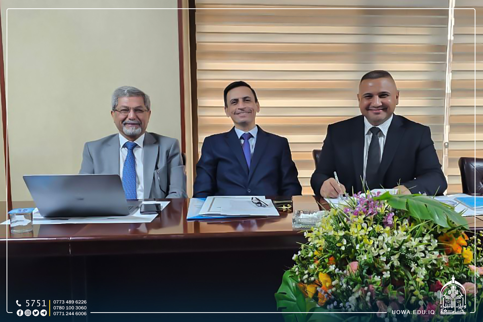 As part of its ongoing efforts to elevate the state of education in our beloved country and to serve our dear students, the University of Warith Al-Anbiyaa Inheritance has signed a scientific agreement with the University of Kirkuk. Representing the University, Professor Dr. Ibrahim Al-Hayawi, the President of the University, signed the agreement, while Dr. Imran Jamal, the President of the University of Kirkuk, represented their institution.